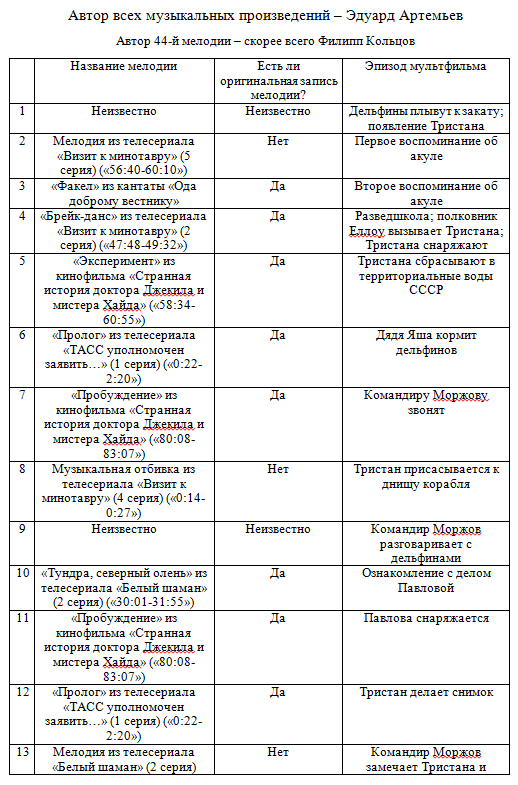 В эпизодах "Ворона и лиса" и "Ворона и волк" я услышал переигранные мелодии "Love Story" и "Un homme et une femme" Френсиса Лея. Вот только не знаю, остальные мелодии - это авторские работы Игоря...