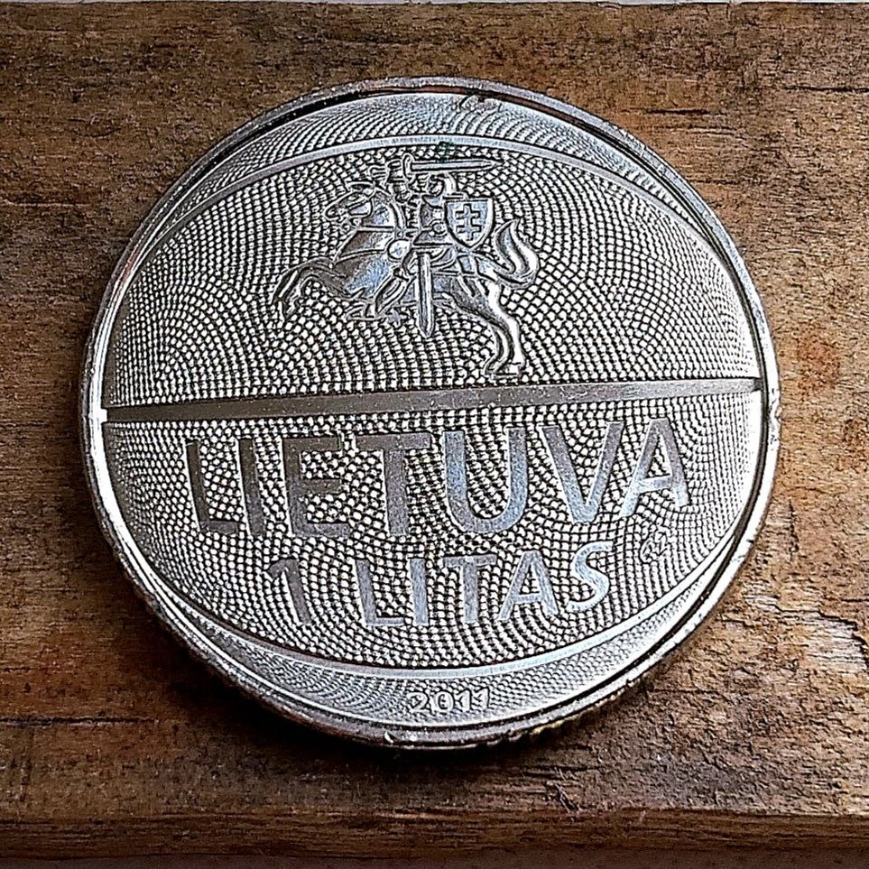 37-й чемпионат Европы по баскетболу проходил с 31 августа по 18 сентября 2011 года в шести городах Литвы. Поэтому поводу в стране была отчеканена симпатичная монетка в виде баскетбольного мяча. Её-то я и приобрел недорого в коллекцию.