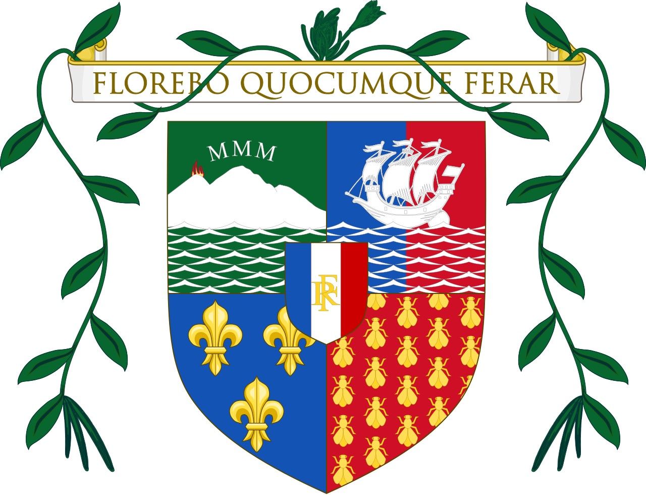 «Коронованный щит» — так называется герб города Сен-Дени-де-ла-Реюньон (заморский департамент Франции, расположен на острове Реюньон в Индийском океане).