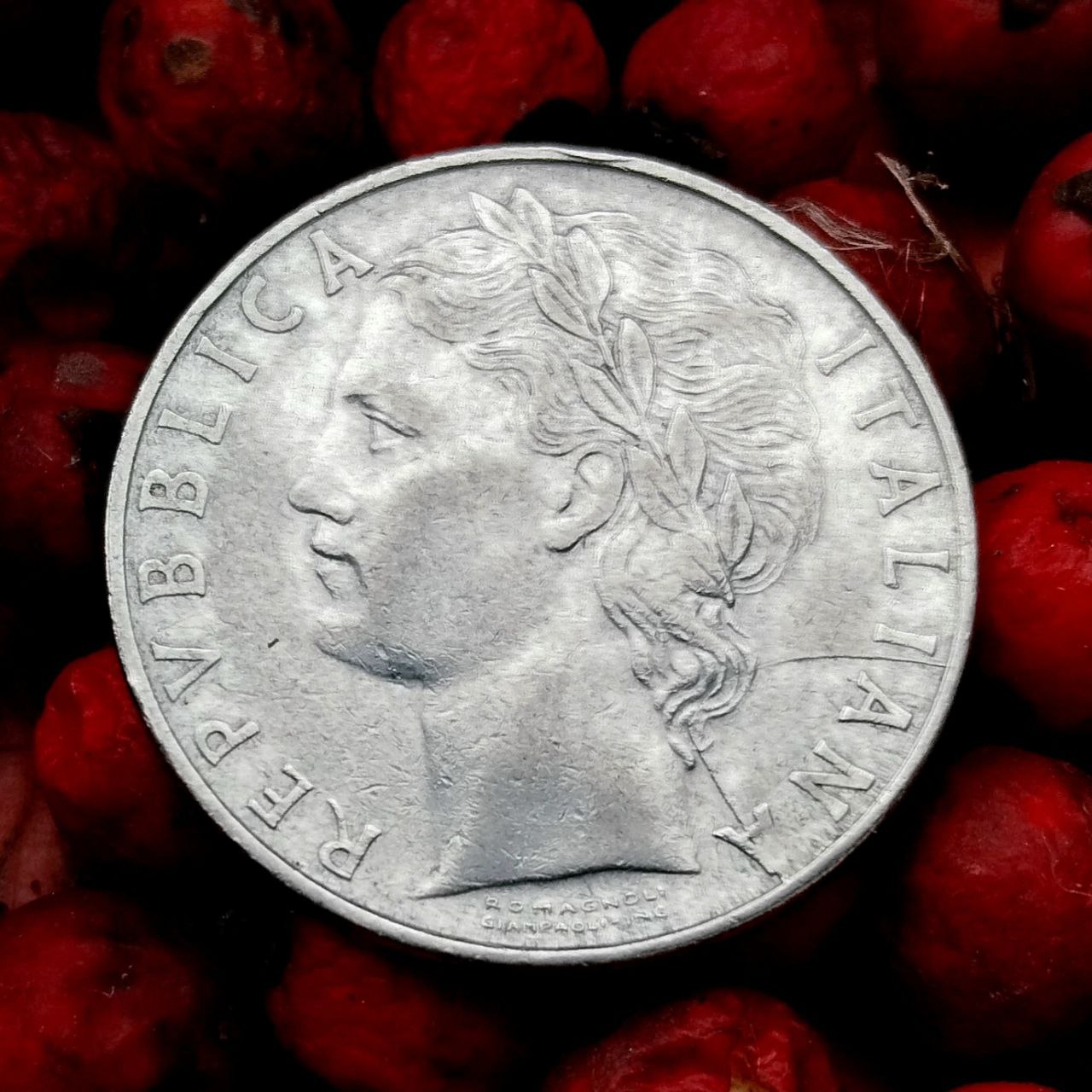 Нечасто монеты чеканят из нержавейки, 100 итальянских лир - одна из них. Номинал в этом дизайне производили с 1955 по 1989 гг.