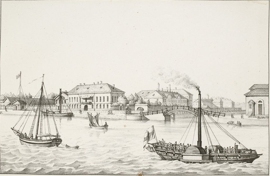 "Для перевозу разного звания людей с их экипажем" использовались "пассажботы" – весельные суда. Отправлялись они от Исаакиевского моста дважды в день. Плата за перевоз составляла 50 копеек.