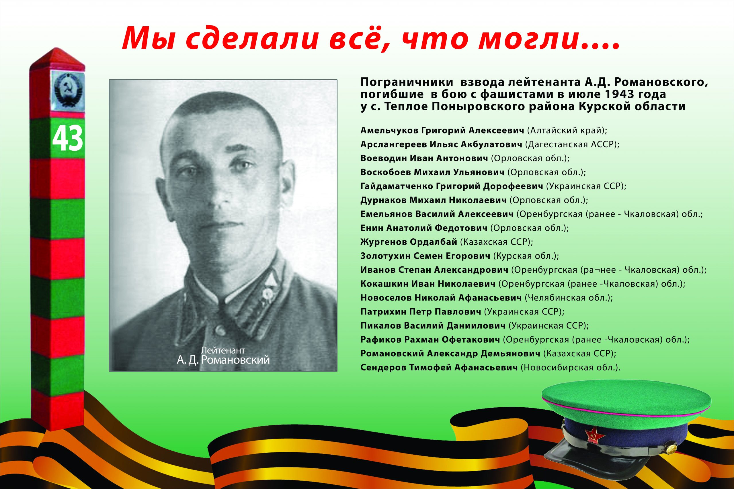 16 июля 1943 года в ходе боев на Курской дуге совершил подвиг взвод Александра Романовского.