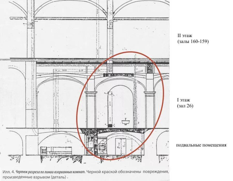 Взрыв застал императора, встречавшего принца, в Малом Фельдмаршальском зале, далеко от столовой.