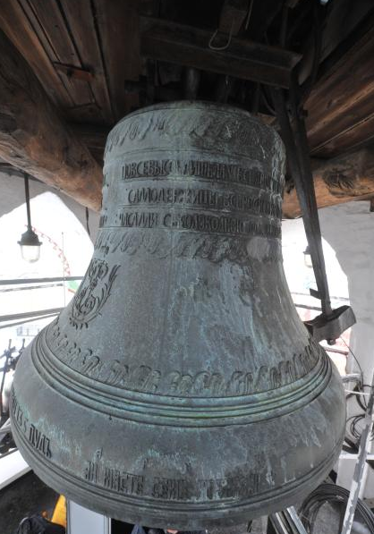 Рельефная надпись на нем гласит: "По высочайшему всеавгустѣйшія Государыни императрицы Екатерины великія, премудрыя матери отечества, самодержицы всероссійскія повелѣнію в пользу первопрестольнаго города Москвы снабжена сія Спасская башня часами съ колокольною музыкою акъ онымъ вылитъ сей колоколъ въ лѣто отъ рождества Христова 1769 году Мая 27 дня вѣсу 135 пудъ лилъ мастеръ Семенъ Можжухинъ".