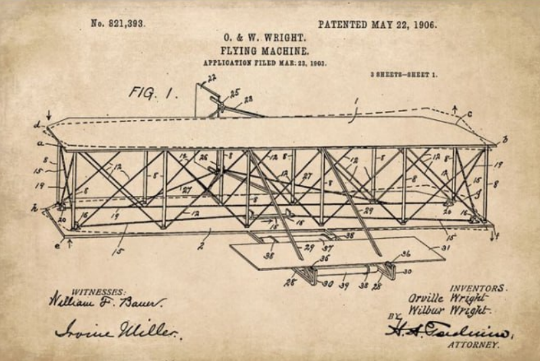 1906 - Братья Орвилл и Уилбер Райт получили патент США №821393 на "Летающую машину".