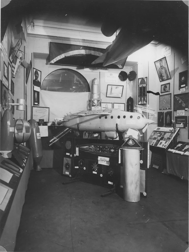 24 апреля 1927 года в Москве на Тверской открылась Первая мировая выставка межпланетных аппаратов и механизмов – проекты фантастических космических аппаратов от советских и иностранных изобретателей. Макет ракеты Циолковского (в продольном разрезе) был изготовлен по рисунку ученого. До запуска первого искусственного спутника Земли оставалось 30 лет.