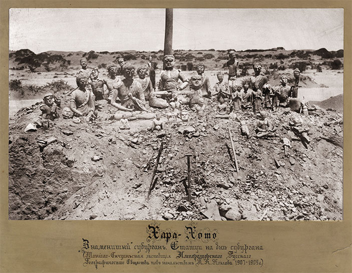 В ходе раскопок, проведённых в Хара-Хото в 1908-1909 годах, была обнаружена библиотека, состоявшая из самого крупного свода текстов на тангутском, китайском и других языках (число около 6000 свитков). Среди них – уникальные произведения буддийской литературы, неизвестные ранее и не имеющие параллелей на других языках.
