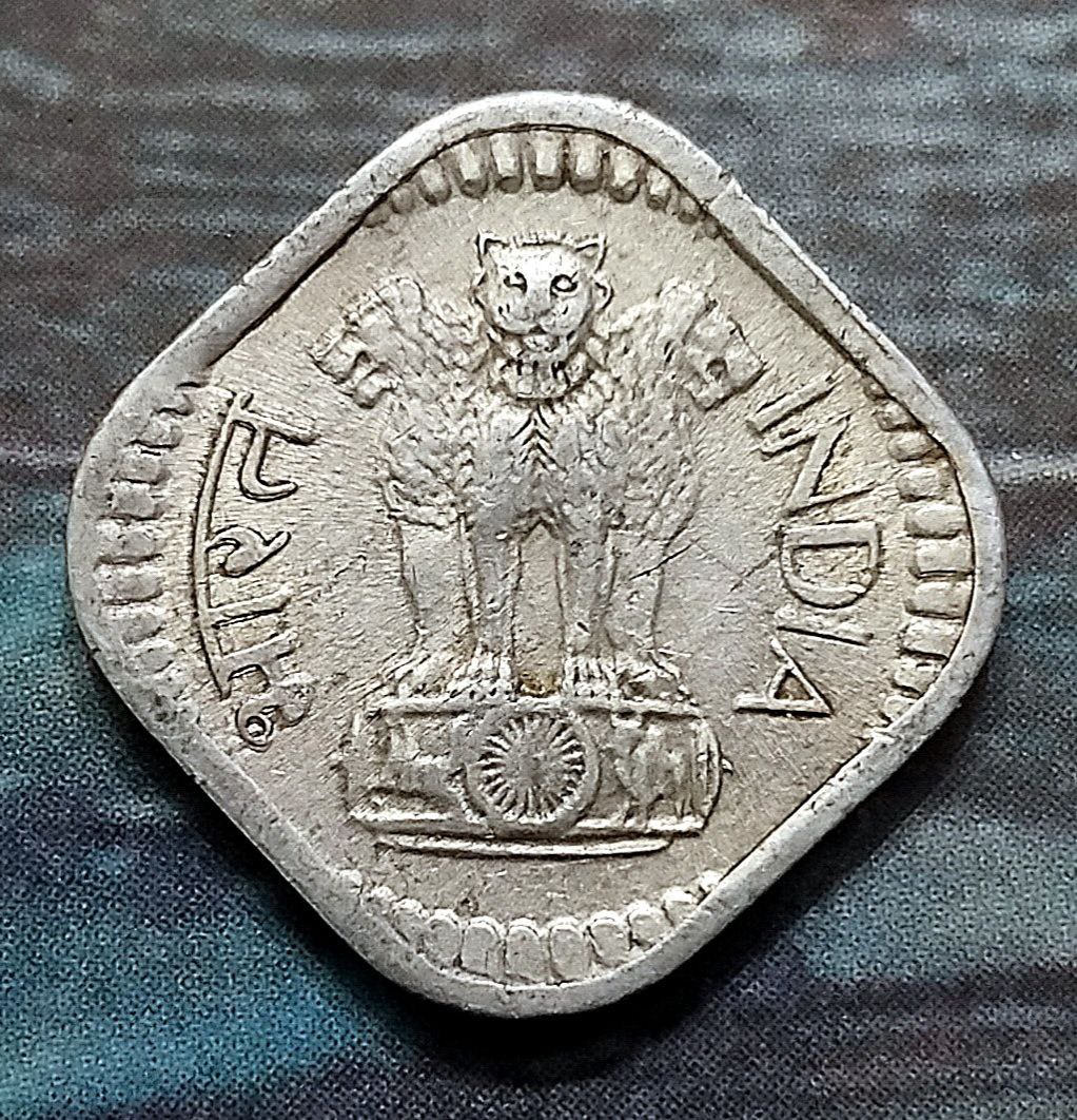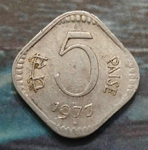 Обожаю монеты необычной формы. Представленные здесь 5 пайса 1977 года - относятся к таковым. Ее можно назвать квадратной, а можно - ромбической. Материал изготовления алюминий.