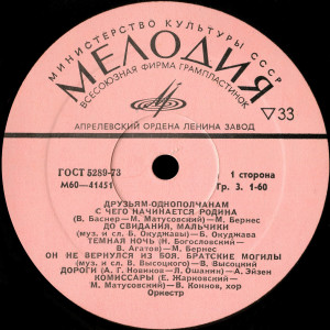 Лейбл: Мелодия АЗГП 33 М 60-41451~52