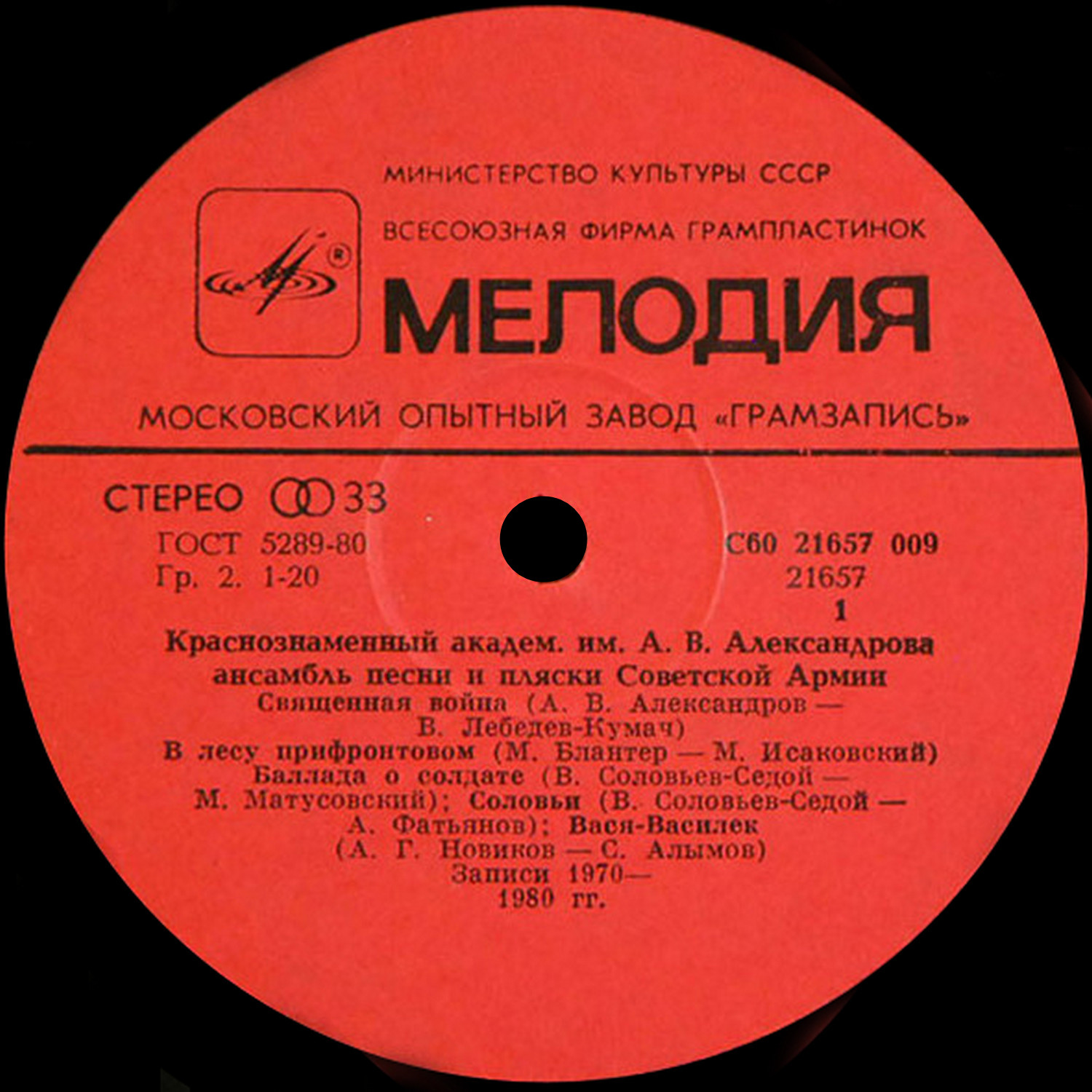 Лейбл: Мелодия МОЗГП С60 21657 009