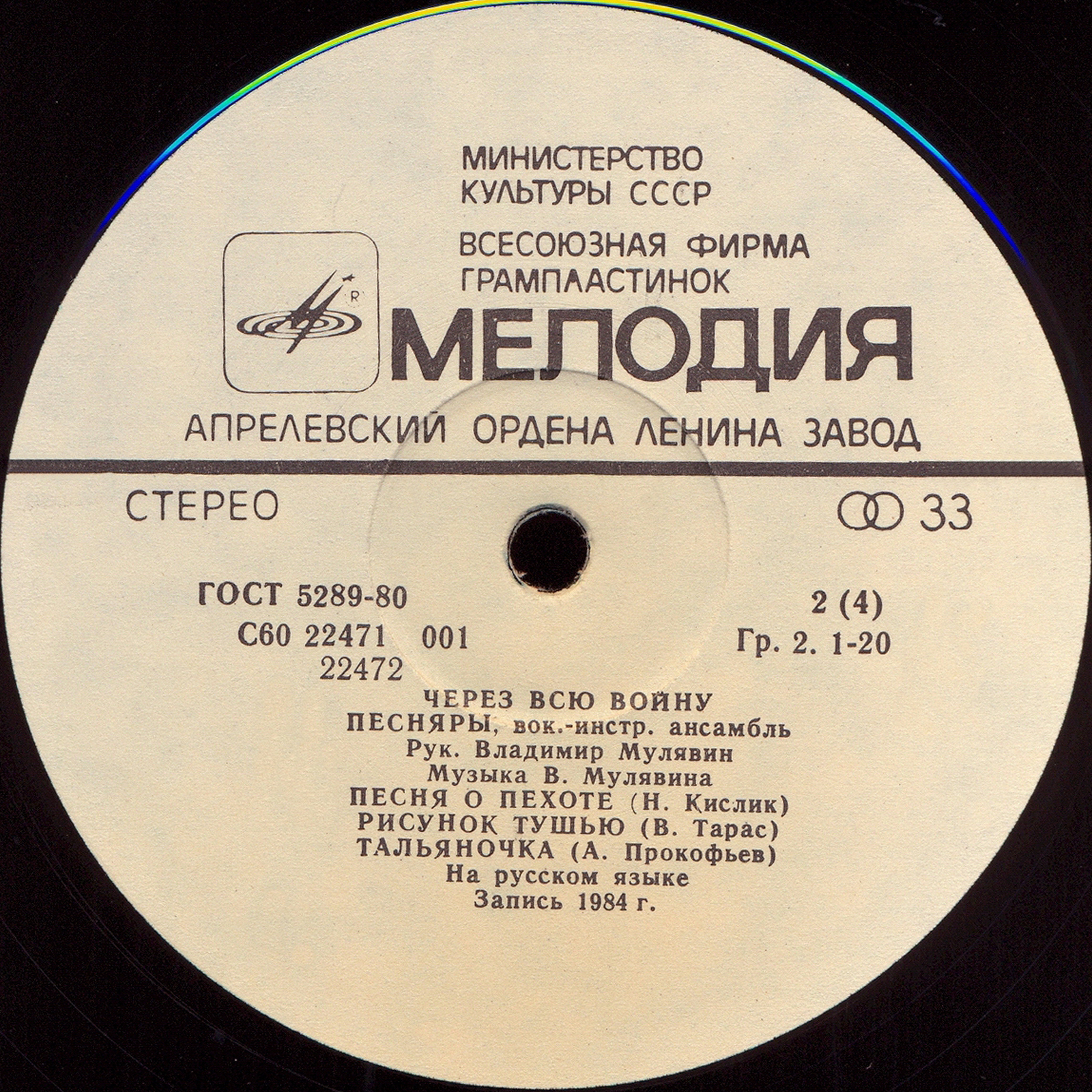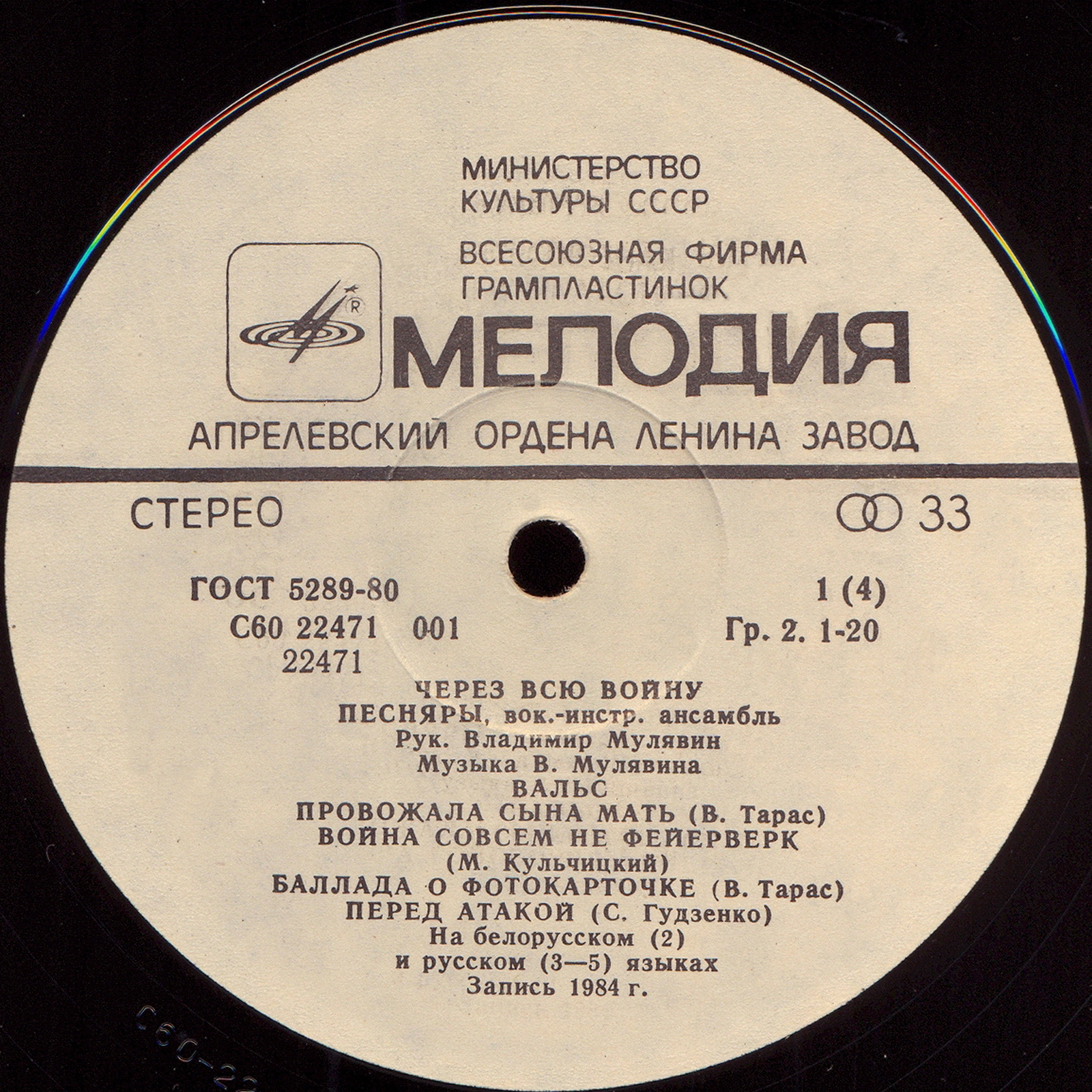 Всесоюзная студия грамзаписи. Запись 1984 г.