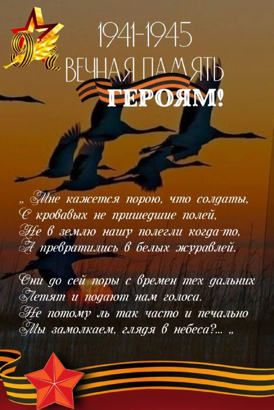 9 МАЯ 1945 - день подписания Германией капитуляции -символизирует окончание самой разрушительной войны в истории СССР, которая унесла более 27 миллионов жизней. Дата стала символом памяти, благодарности ветеранам и гордости за героизм народа. Цена Победы была непомерно высока. Миллионы жизней советских граждан – солдат и офицеров, партизан и подпольщиков, тружеников тыла – легли на алтарь свободы. Разрушенные города и села, сожженные деревни, опустошенные земли… Война прошлась по нашей стране огненным смерчем, оставив после себя незаживающие раны. Эта дата напоминает не только о победе, но и о цене, которой она была достигнута — миллионы жизней, разрушенные судьбы и тяжелое послевоенное восстановление.