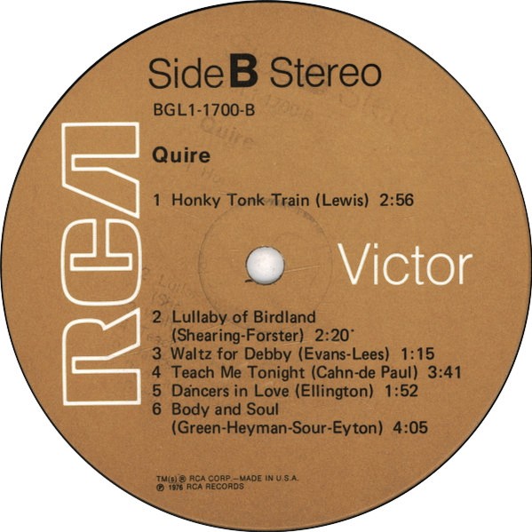 Одноимённый альбом ансамбля QUIRE, по некоторым данным, 1976 года выпуска, включающий широкий выбор песен от стандартов до современного джаза, признаётся потрясающим экспериментальным шедевром в стиле скэт-хора. Данный редкий релиз, не довольствующийся простой, но стильной музыкой, в действительности максимально исследует и показывает неисчерпаемые возможности главного инструмента исполнителей - человеческого голоса. А интенсивное, прогрессивное звучание пятиминутной композиции Дэйва Брубека «Blue Rondo A La Turk» поистине леденит душу даже взыскательного слушателя!