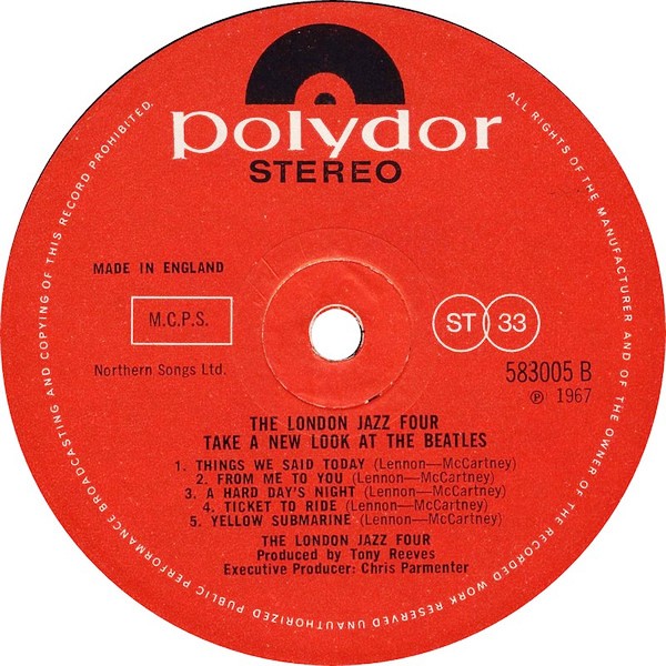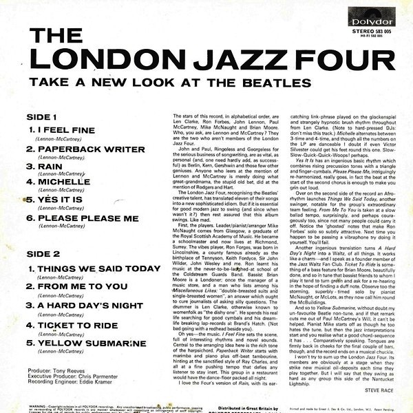 А именно: Лондонская джазовая четвёрка (то бишь уже немного знакомый нам квартет The London Jazz Four) предлагает взглянуть по-новому на произведения более именитой ливерпульской четвёрки, разумеется, за авторством её руководящего тандема Lennon-McCartney, на их альбоме "Take A New Look At The Beatles" далёкого 1967 года.