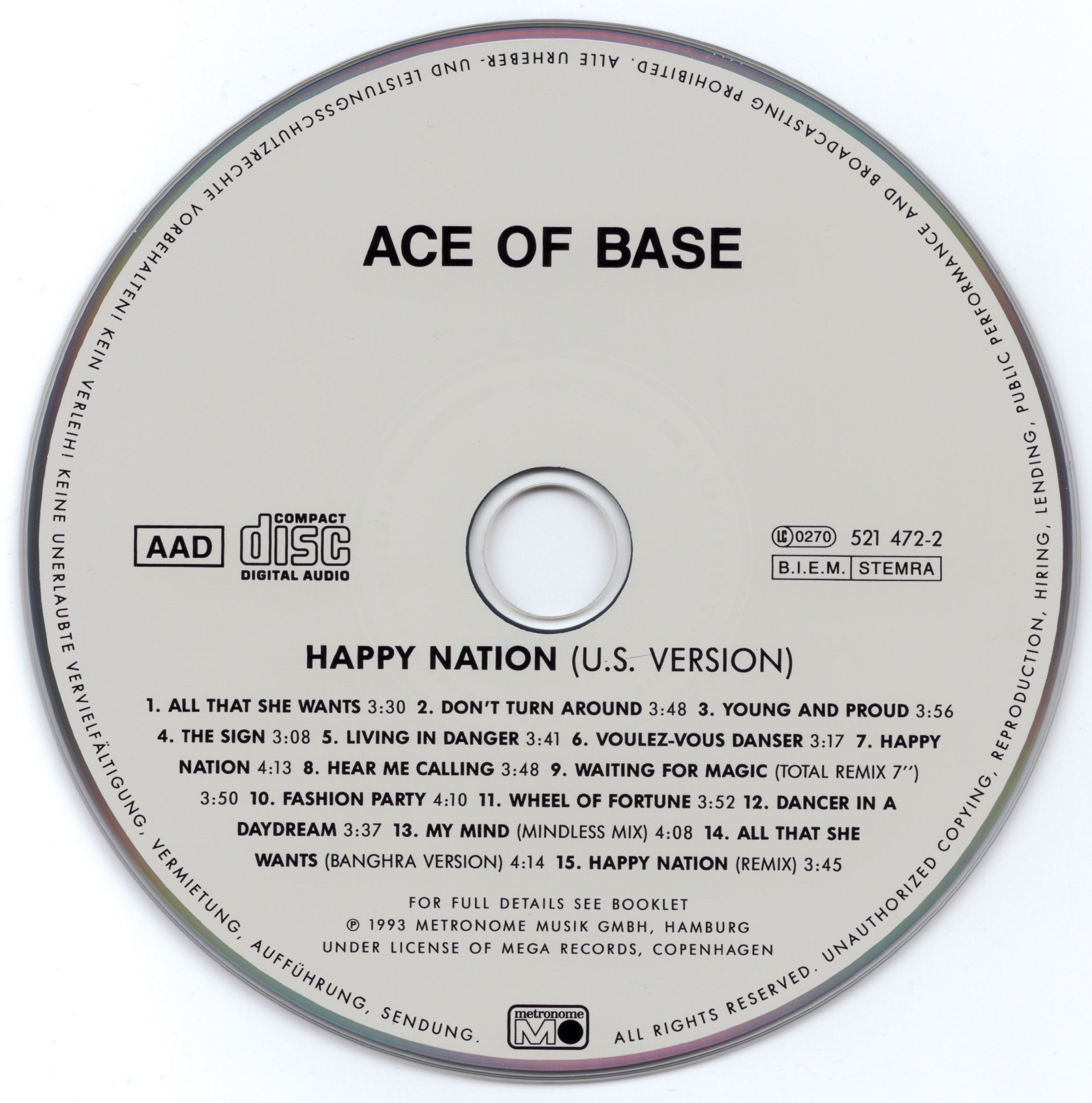 Ⓟ 1993 Metronome Music GmbH Hamburg under license of Mega Records, Copenhagen.