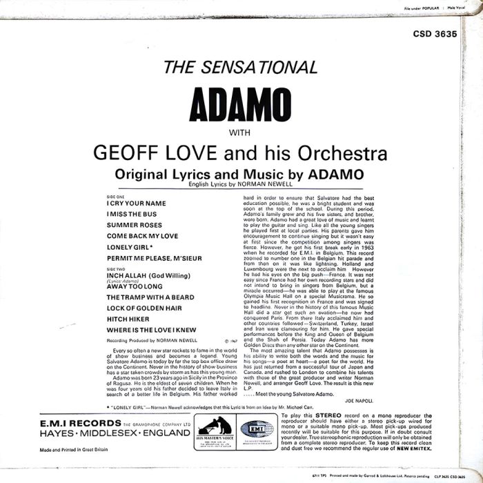 Adamo - The Sensational Adamo (1967)