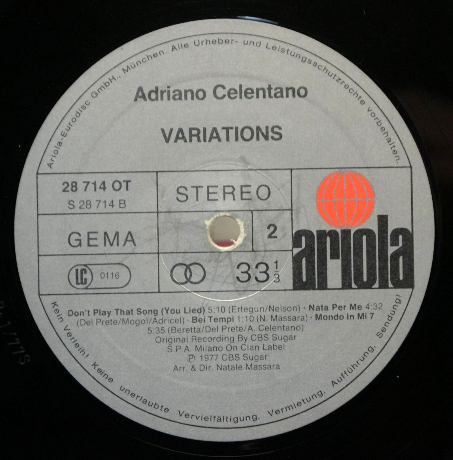 Original Recording By CBS Sugar S.P.A. Milano On Clan Label