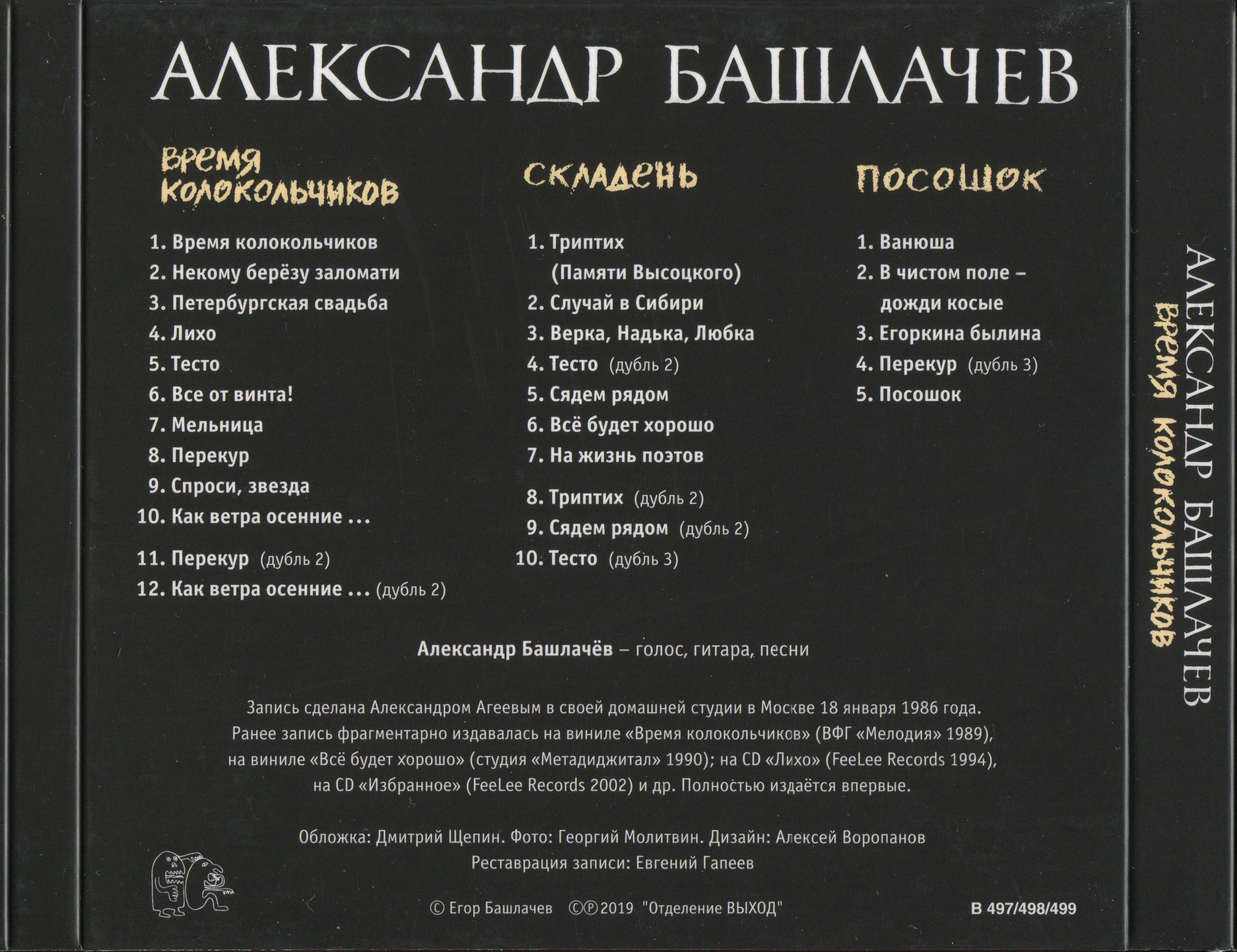 Александр Башлачёв (2019) - Время колокольчиков (3 CD)