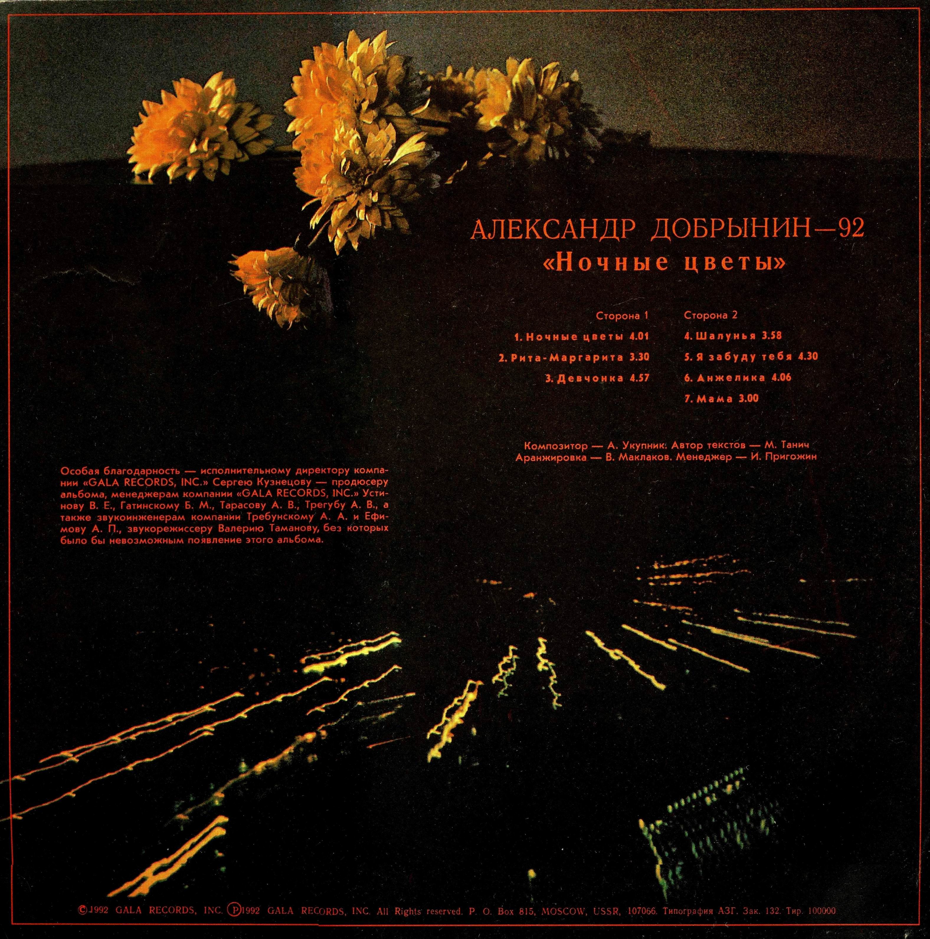 Александр Добрынин ~ (1992) Ночные цветы (Песни на стихи Михаила Танича)