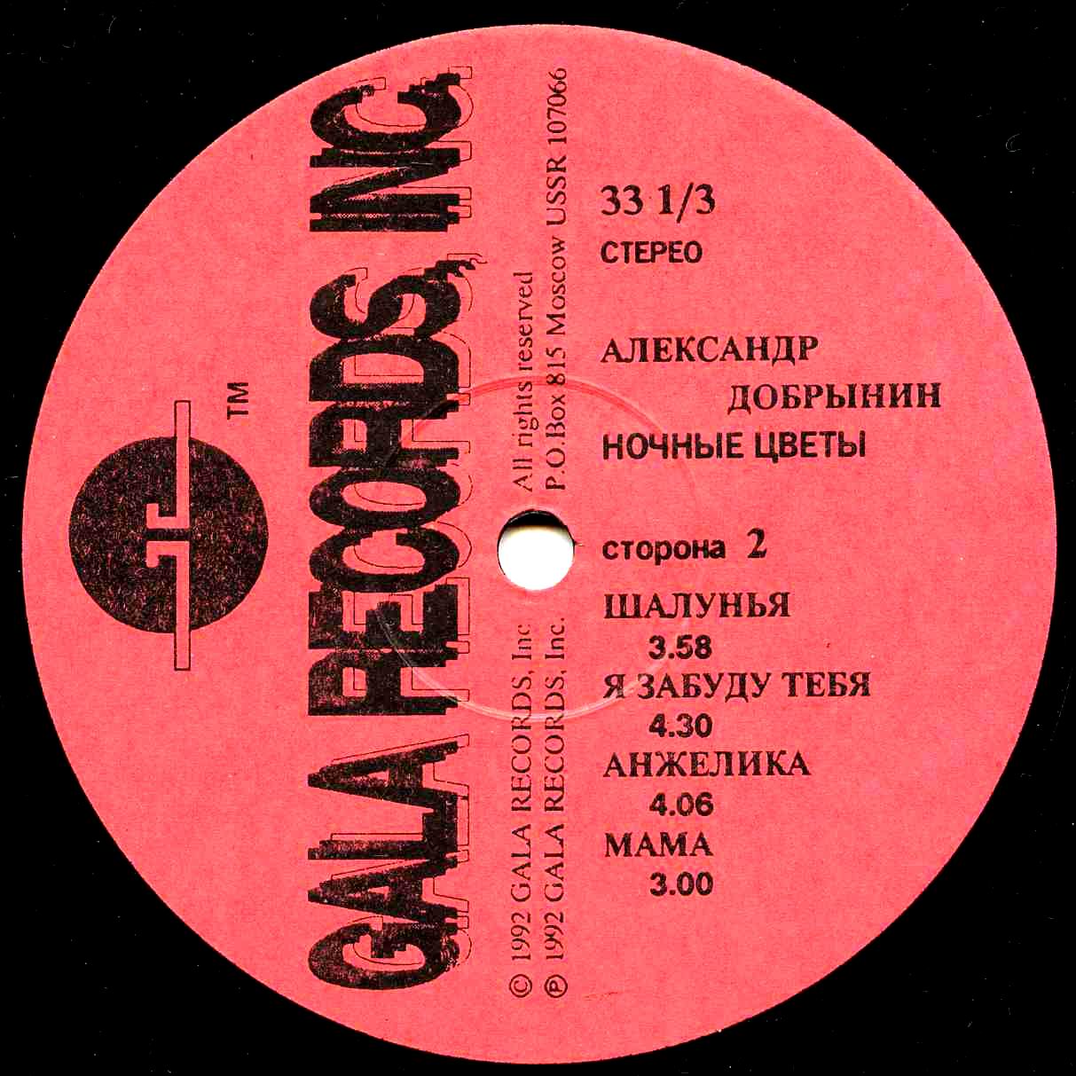 Лейбл: Gala Records.Inc R90 01041
