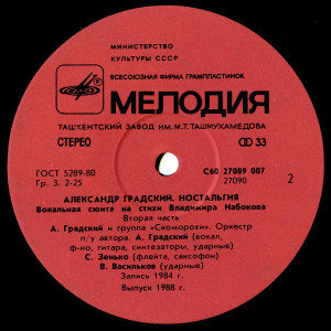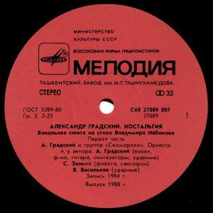 Лейбл: Мелодия ТЗГП С60 27089 007