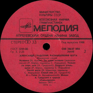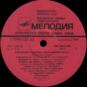 Лейбл: Мелодия АЗГП С60 26447 004