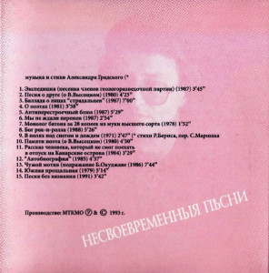 "Несвоевременныя пҍсни" - сборник записей Александра Градского, сделанных в разные годы, вышедший в 1993 году.