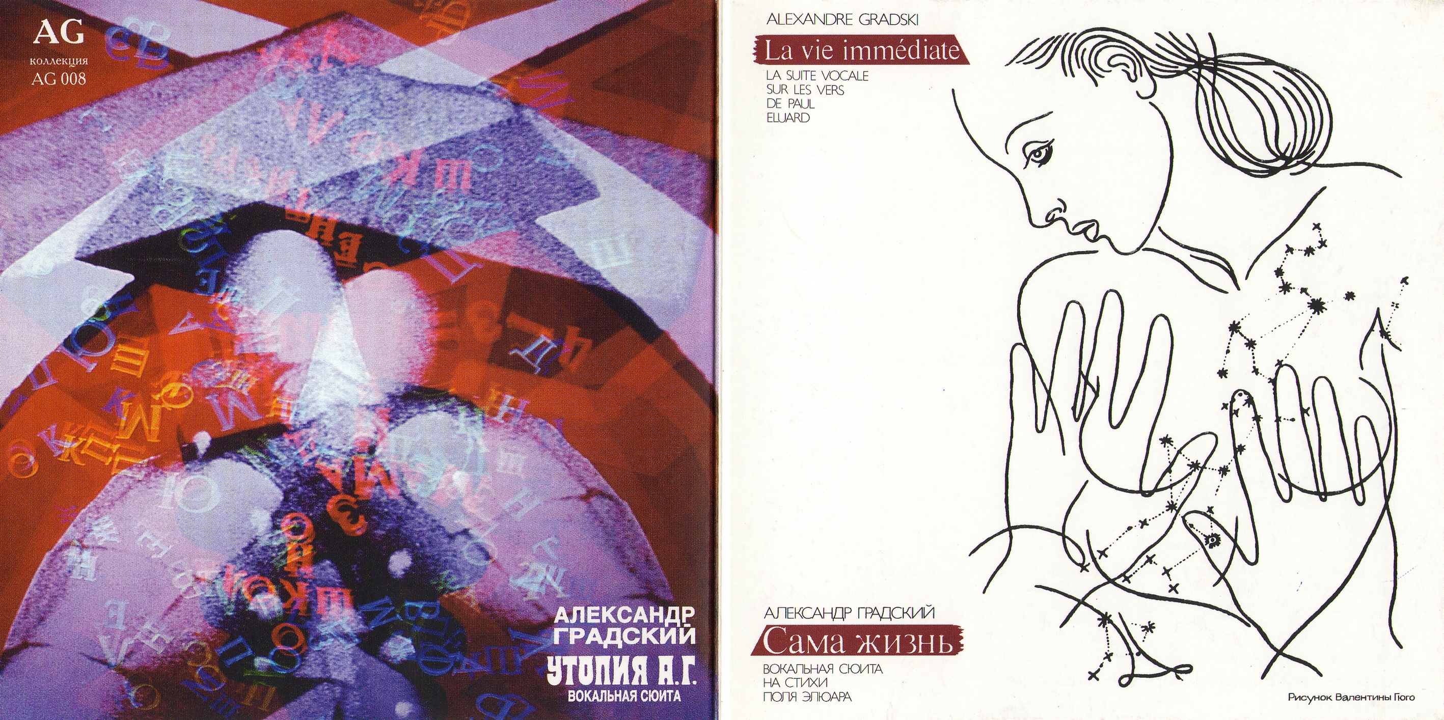 Графический рисунок с обнаженной женщиной и двумя руками, который приписан художнице Валентине Гюго (Валентина Мари Огюстин Гросс, 1887-1968), появился на обложке пластинки Александра Градского (1949-2021), где он со своей группой «Скоморохи» исполняет вокальную сюиту на стихи Поля Элюара (Эжен Эмиль Поль Грендель, 1895-1952). Удивительно, но каким-то образом данный конверт был пропущен советской цензурой. Скажете, что ничего предосудительного в такой обложке нет, тем более, что это все же не фотография, а рисунок? Однако факт остается фактом: вот советская пластинка, вот грудь женщины, а вот руки, которые… (додумайте сами).