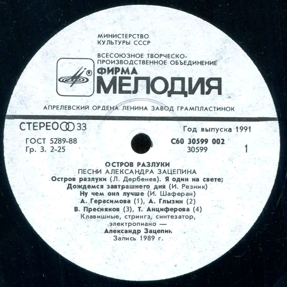 Александр Зацепин ~ (1991/1989) VA - Остров разлуки (Песни Александра Зацепина)