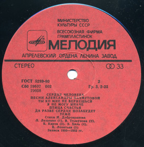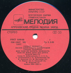 Лейбл: Мелодия АЗГП С60 19607 002