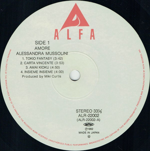 Alessandra Mussolini – Amore, Alfa – ALR-22002 (1982)