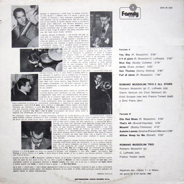 Да, "Ella Red Blues", за авторством маэстро, с фактически первого сольного альбома Муссолини "Jazz Allo Studio 7", 1963 года выпуска, сразу получившего положительные отзывы критиков.