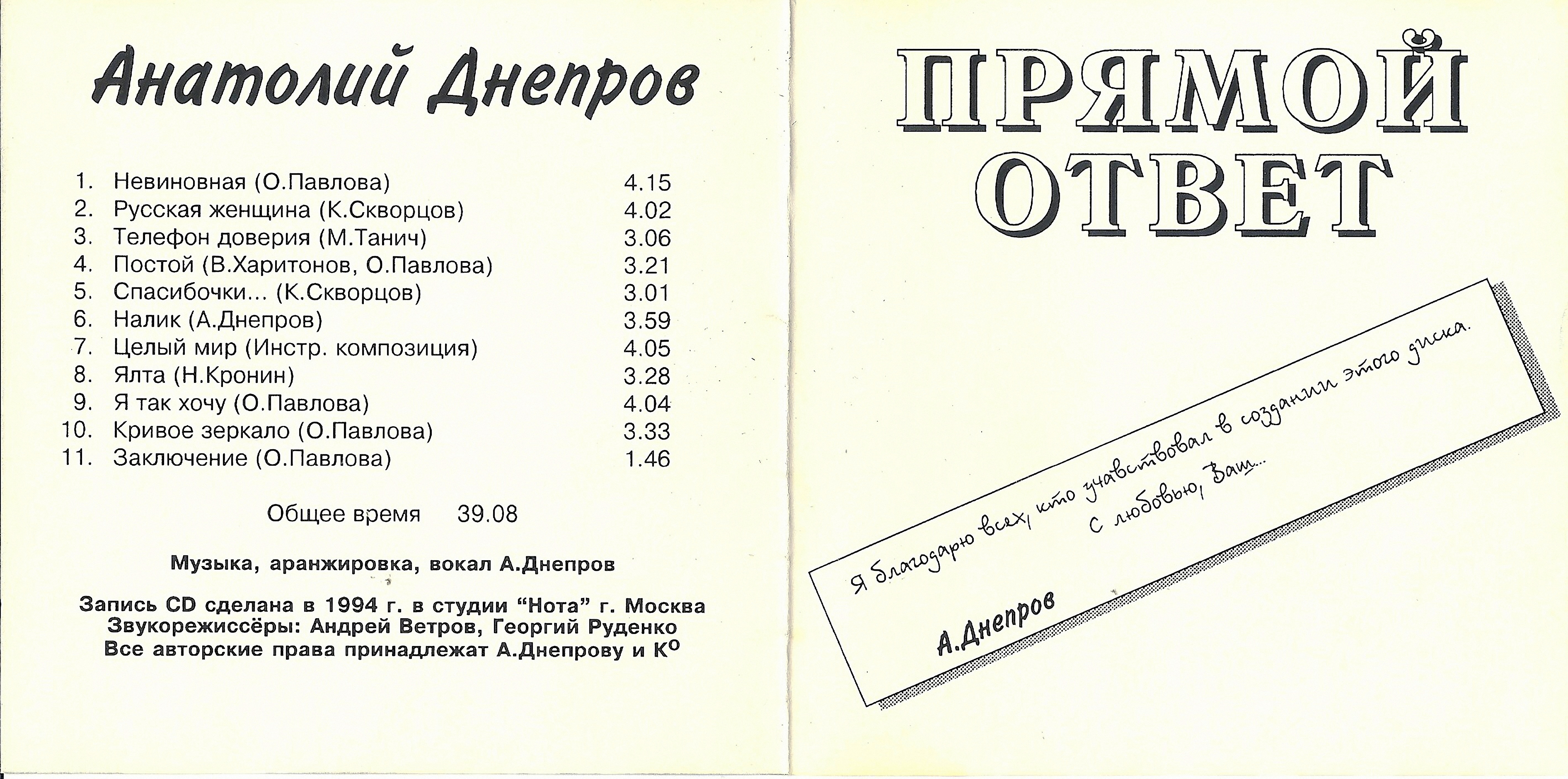 Анатолий Днепров ~ (1995/1994) Прямой ответ
