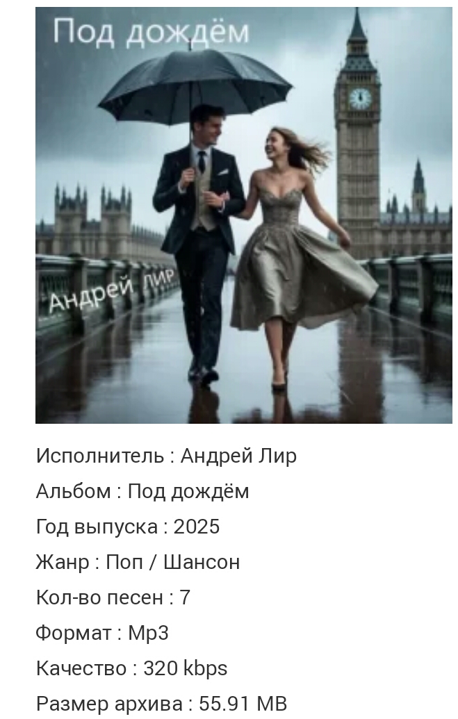 Андрей Лир. О себе. Меня зовут Андрей Лир мне 43 года (в 2009 г., сейчас 59), музыкой увлекаюсь с юности, свой первый альбом "Осень" написал с октября 2008 - май 2009г. Повод для написания альбома послужили сильные чувства любви, стремление к оригинальному исполнению песни и непреодолимое желание поделиться своими чувствами с окружающими, которые выражены в моем творчестве. Мой голос часто звучит на краснодарском радио шансон.