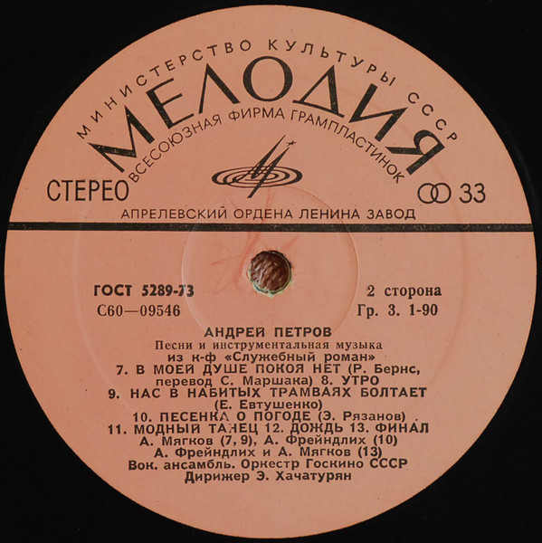 Андрей Петров – Песни И Инструментальная Музыка Из К/Ф "Служебный Роман"