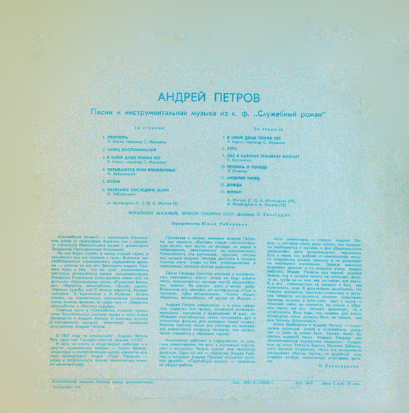 Андрей Петров – Песни И Инструментальная Музыка Из К/Ф "Служебный Роман" (1977)