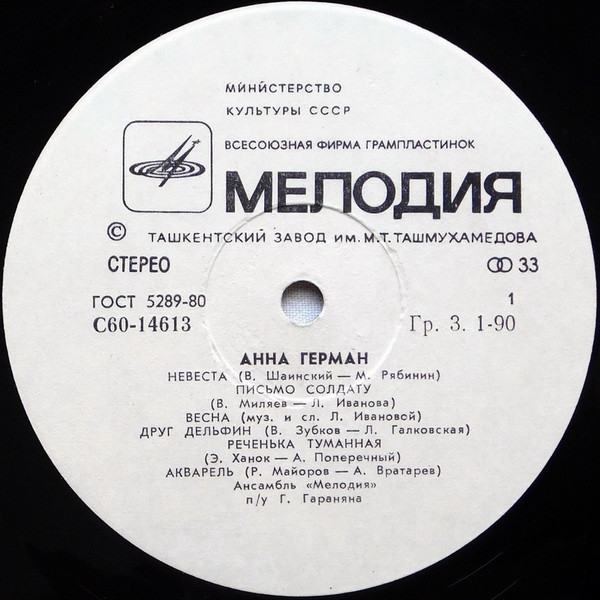 Пластинка выпущена Мелодией в 1979 году, переиздавалась не меньше 38 раз. Данный экземпляр Ташкентского завода грампластинок 1980 г.