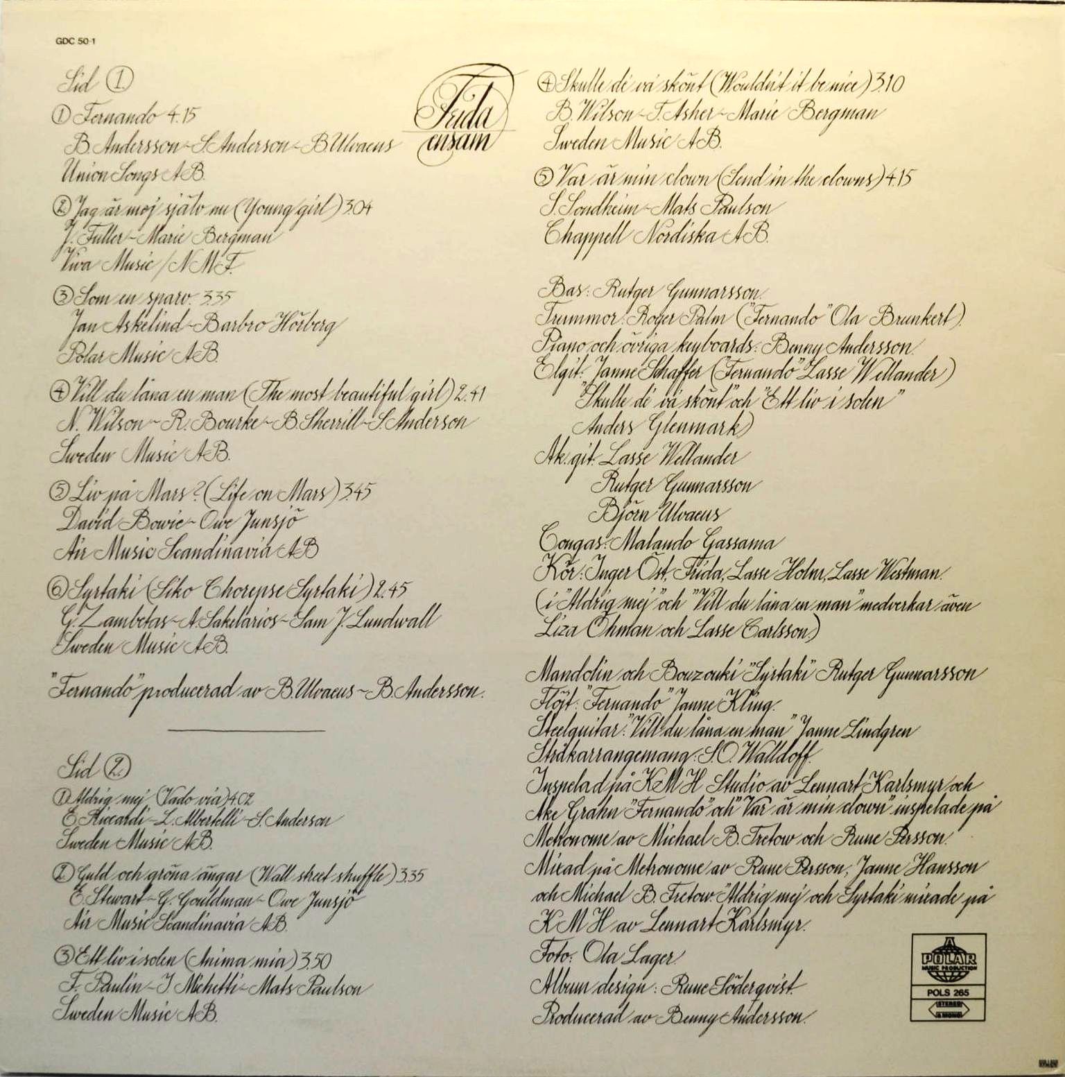 Backing Vocals – Frida, Inger Öst, Lasse Carlsson (A4, B1), Lasse Holm, Lasse Westman, Liza Öhman (A4, B1)