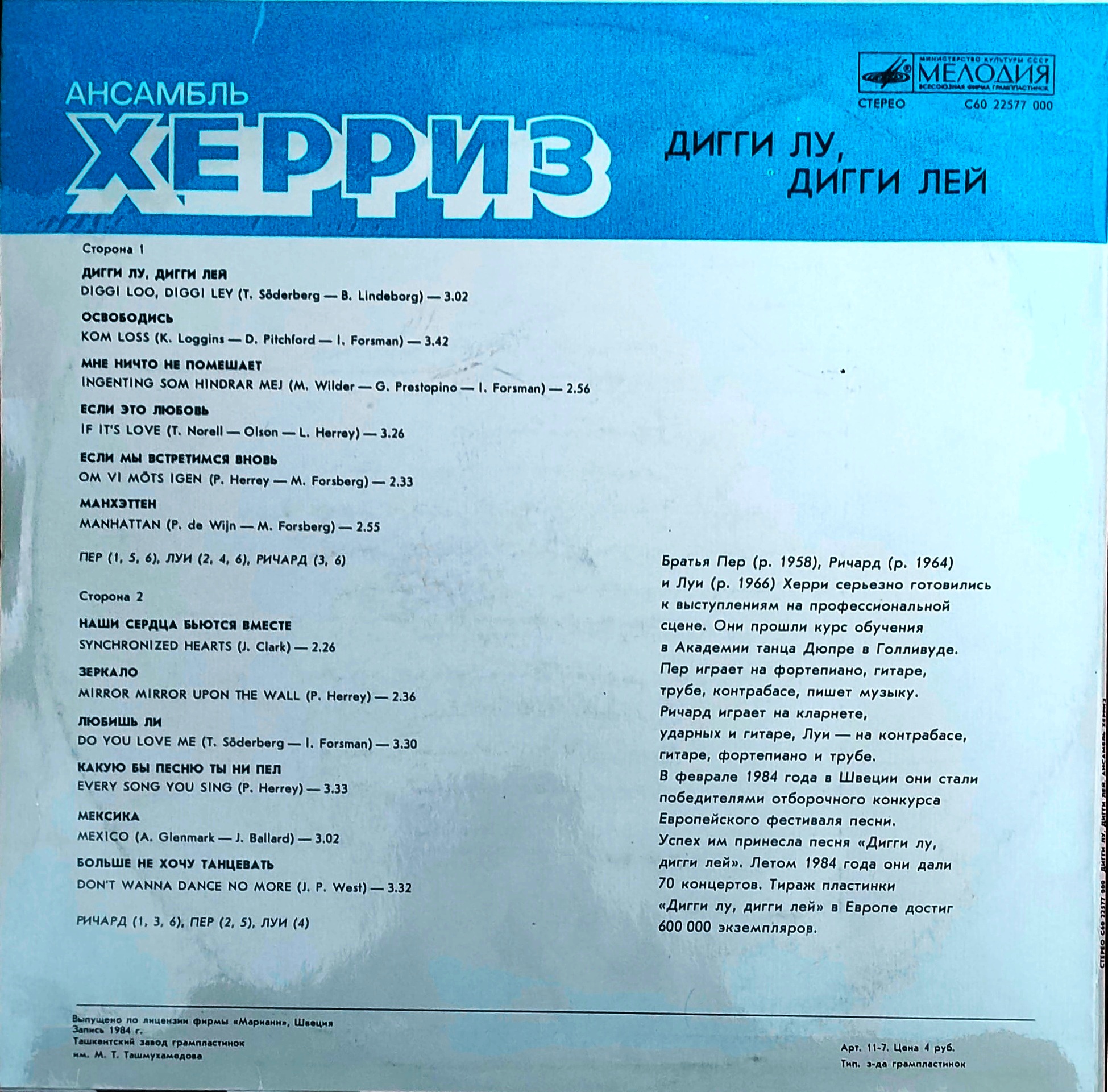 Ансамбль Херриз • HERREY'S ~ (1984) Дигги лу, дигги лей • Diggi Loo, Diggi Ley