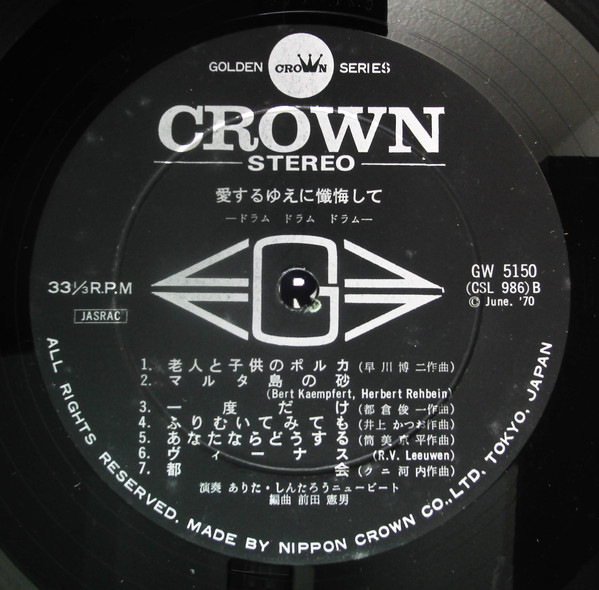 Arita Shintaro & New Beat – Drum Drum Drum - Aisuru Yue Ni Zangeshite (1970)