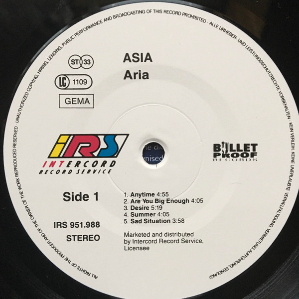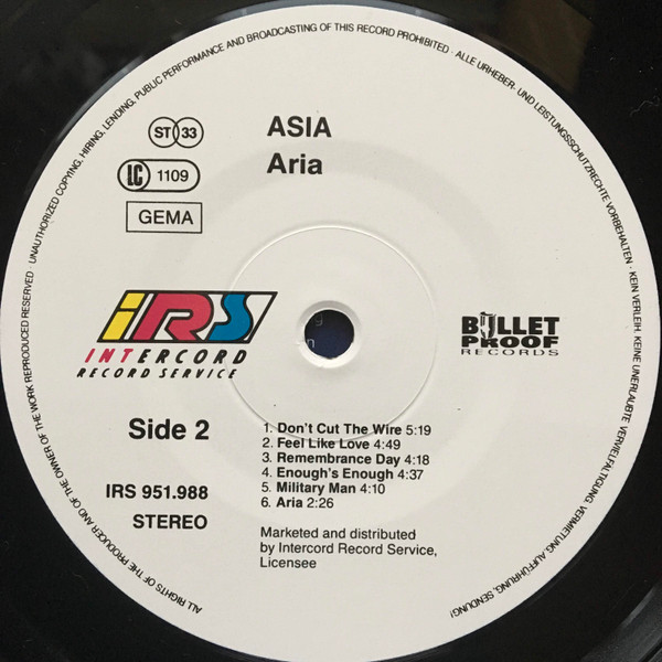 Лейбл - Intercord Record Service – IRS 951.988, Bullet Proof Records – IRS 951.988
