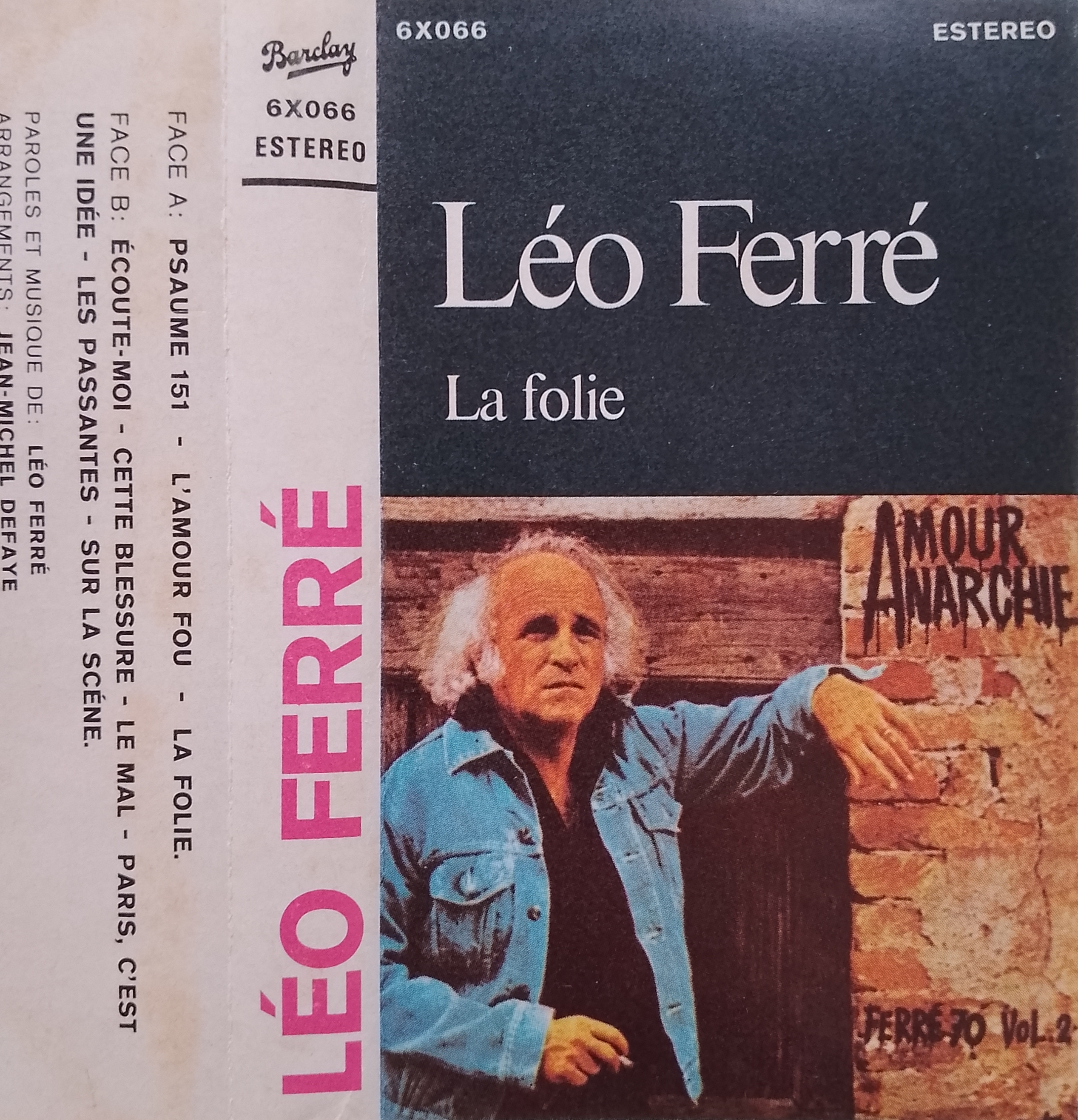 Аудиокассета фирмы Barclay (Франция) - Léo Ferré / La Folie - Amour Anarchie.