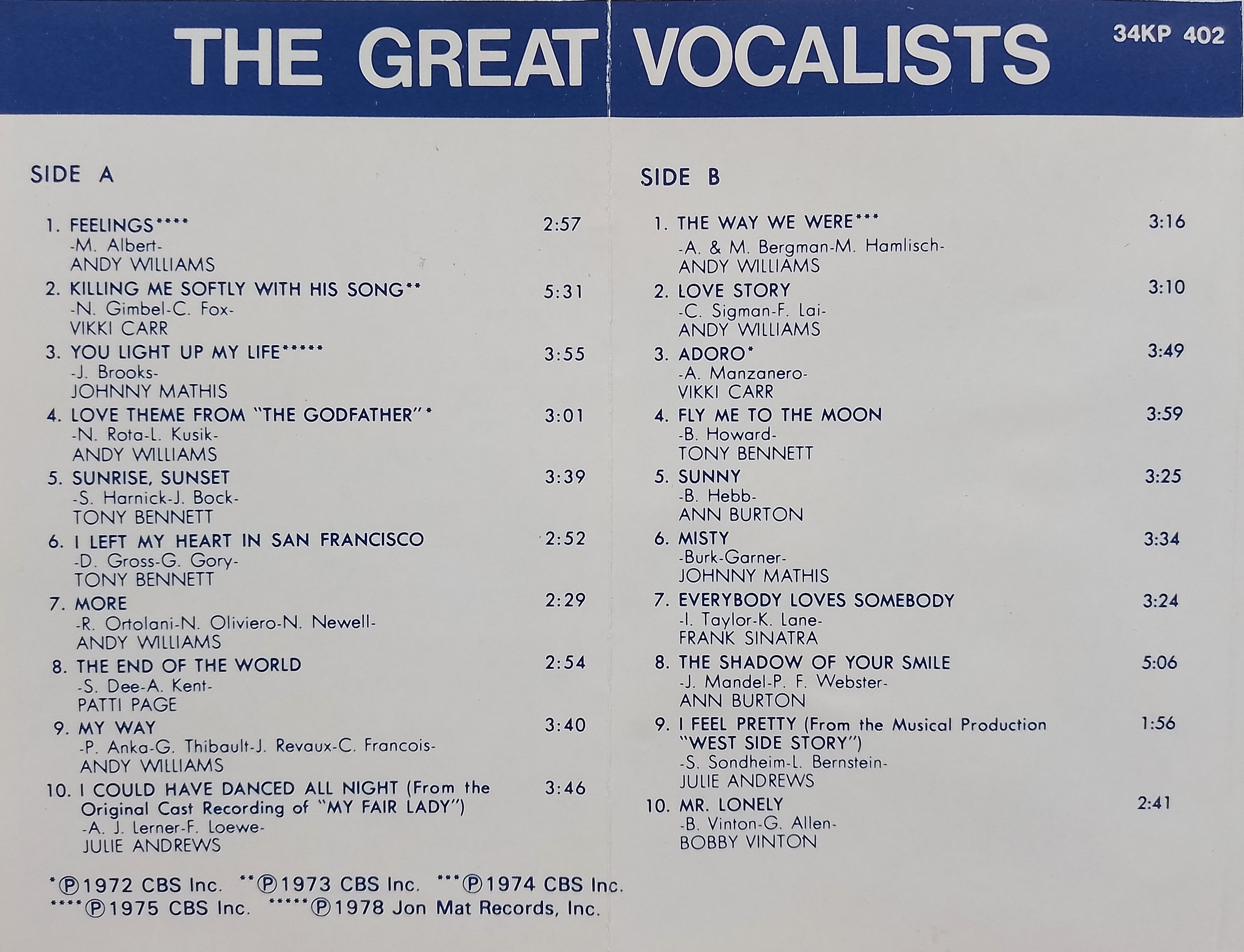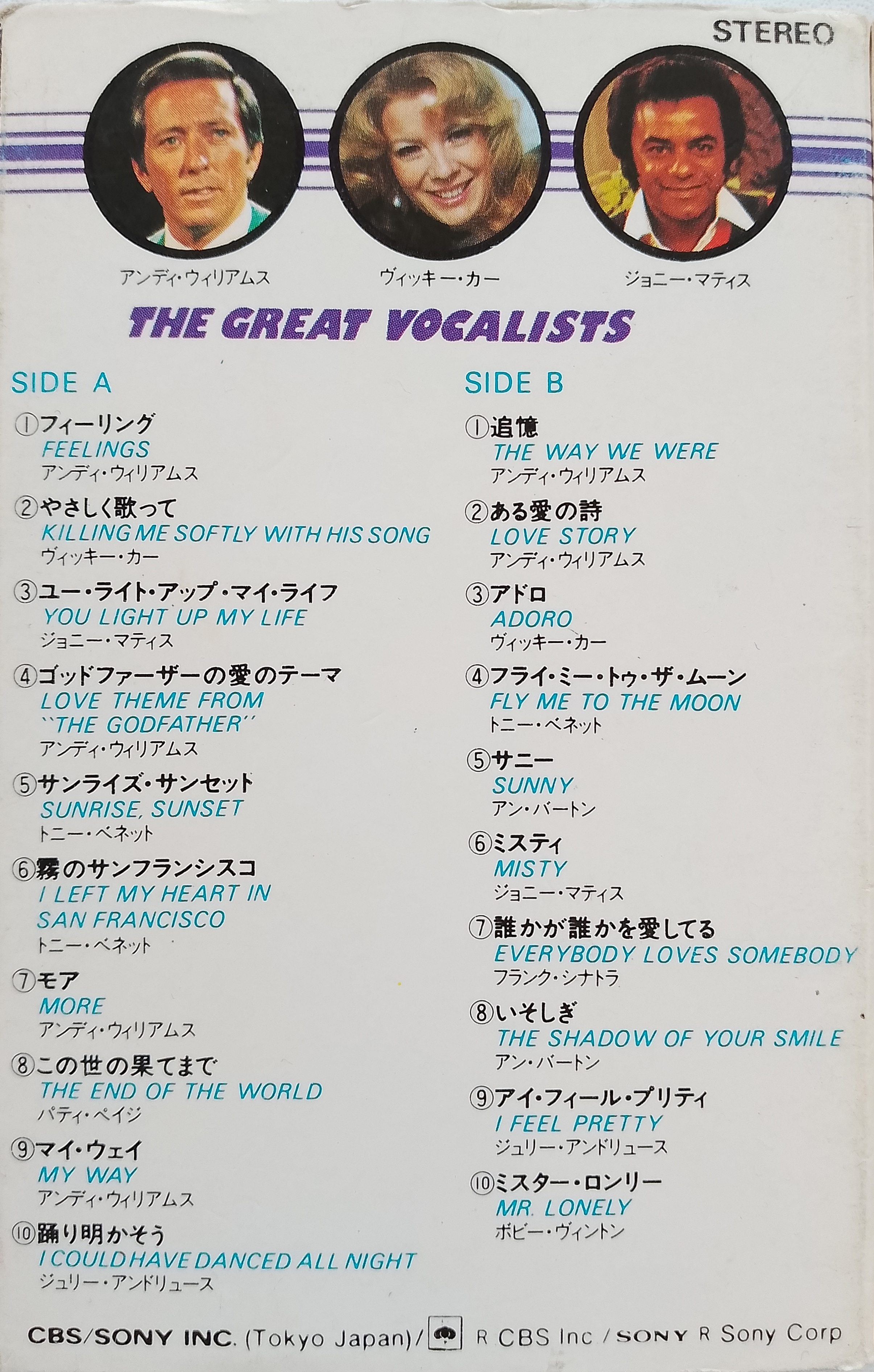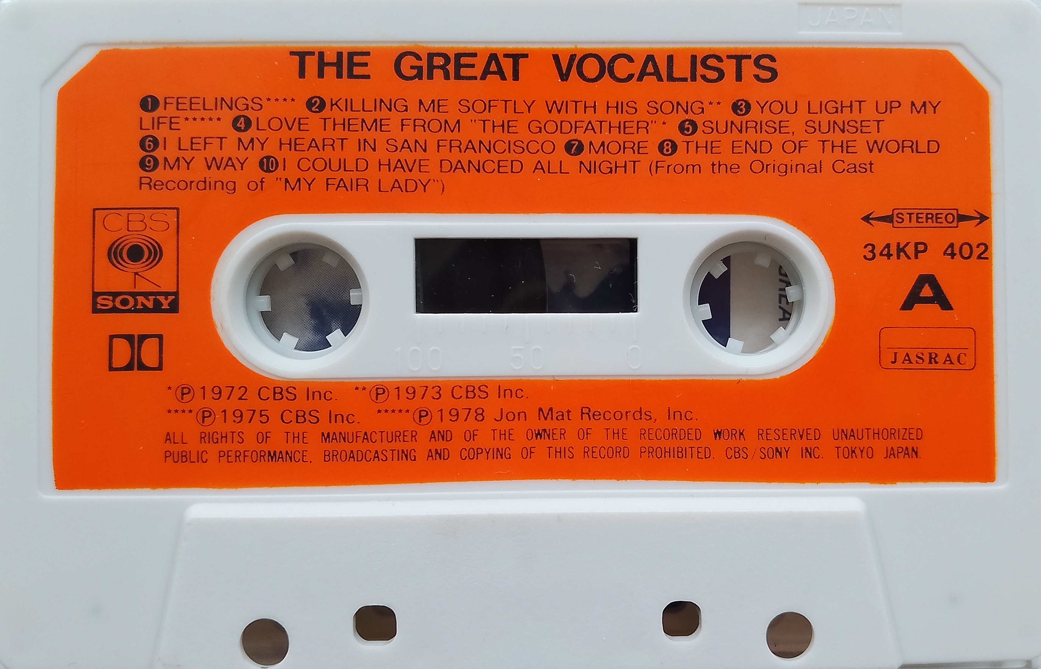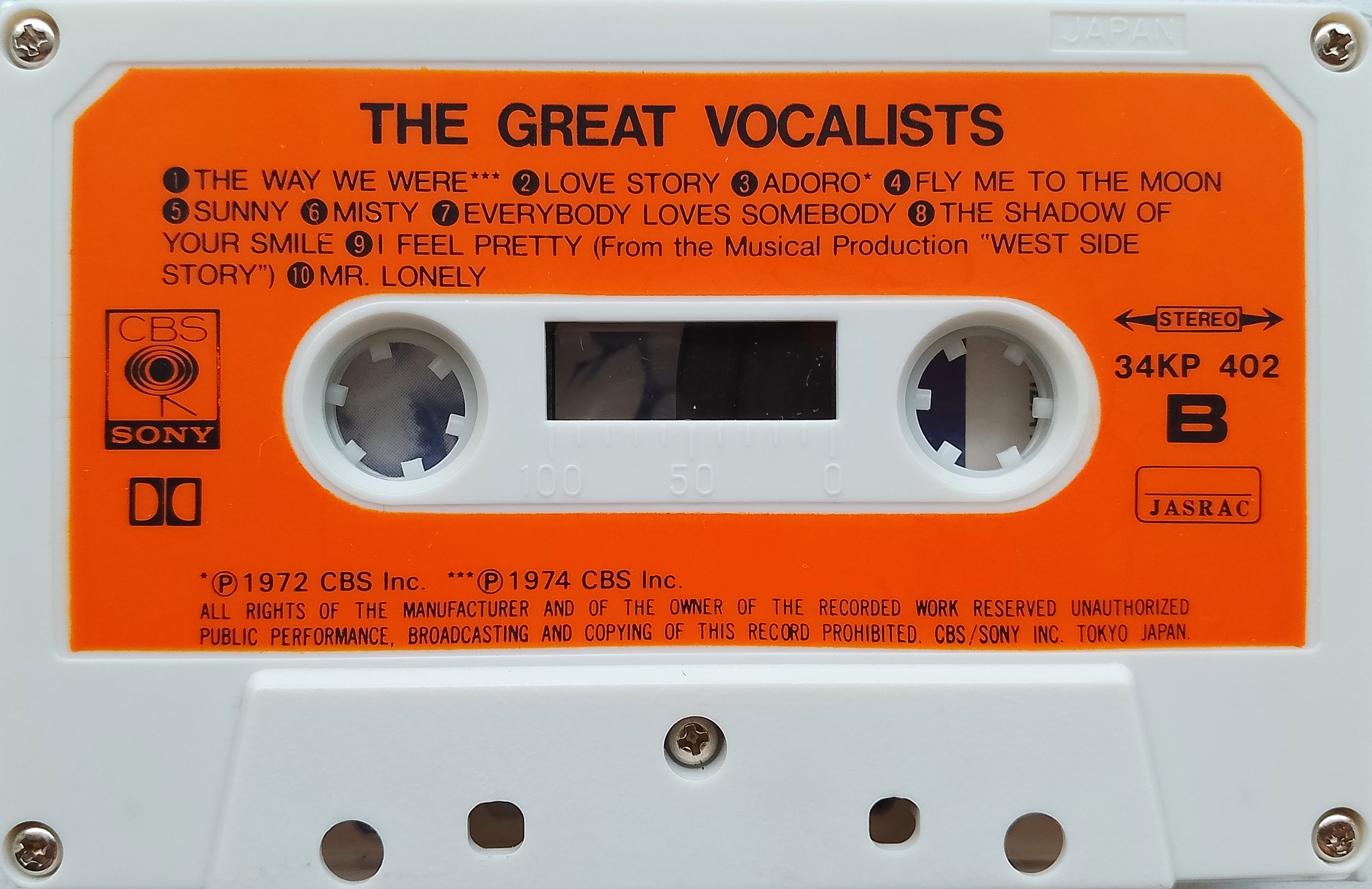 Аудиокассета фирмы CBS/SONY (Япония) - Великие Вокалисты. Полное собрание вокальных хитов. 1978 год.