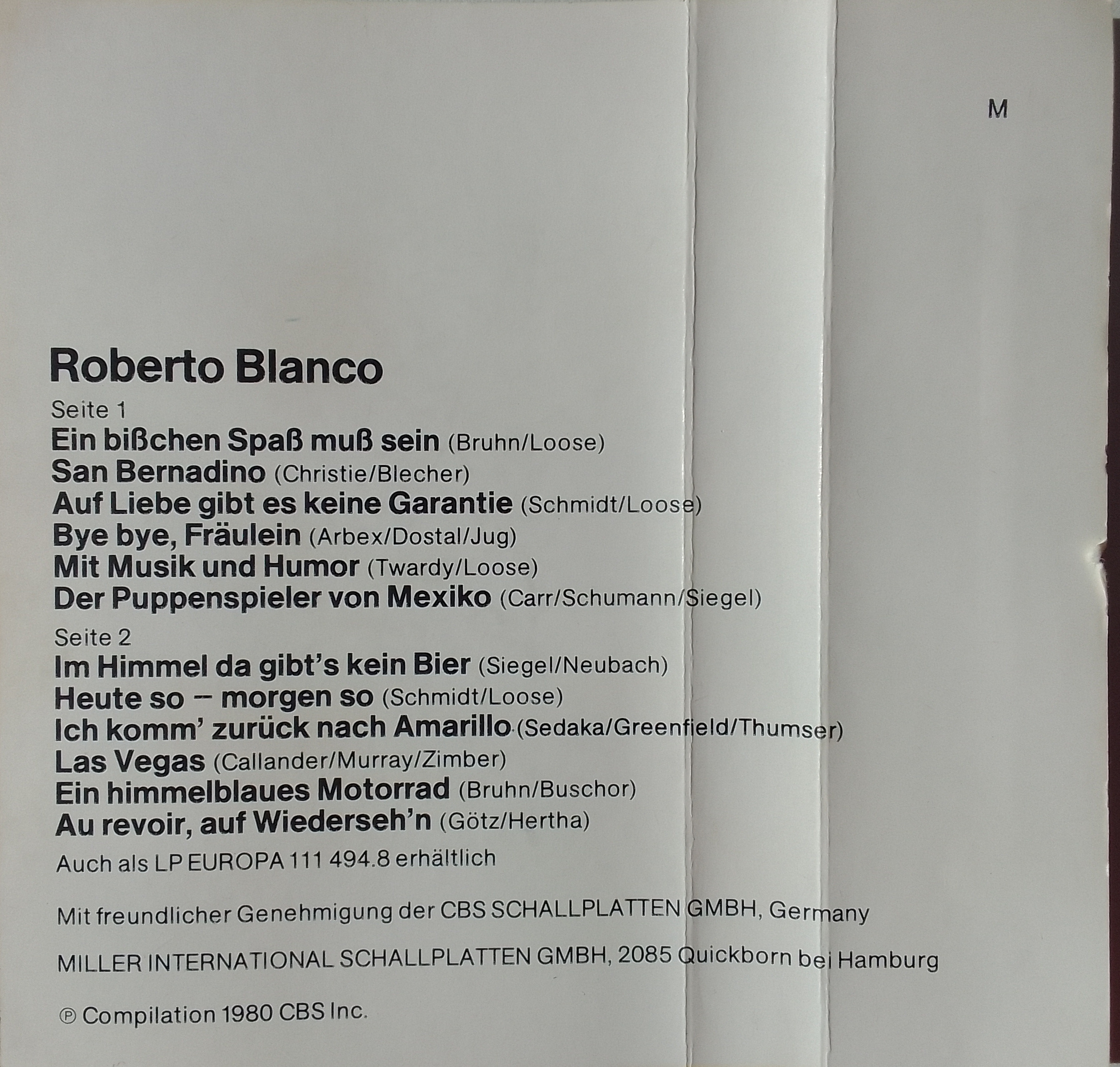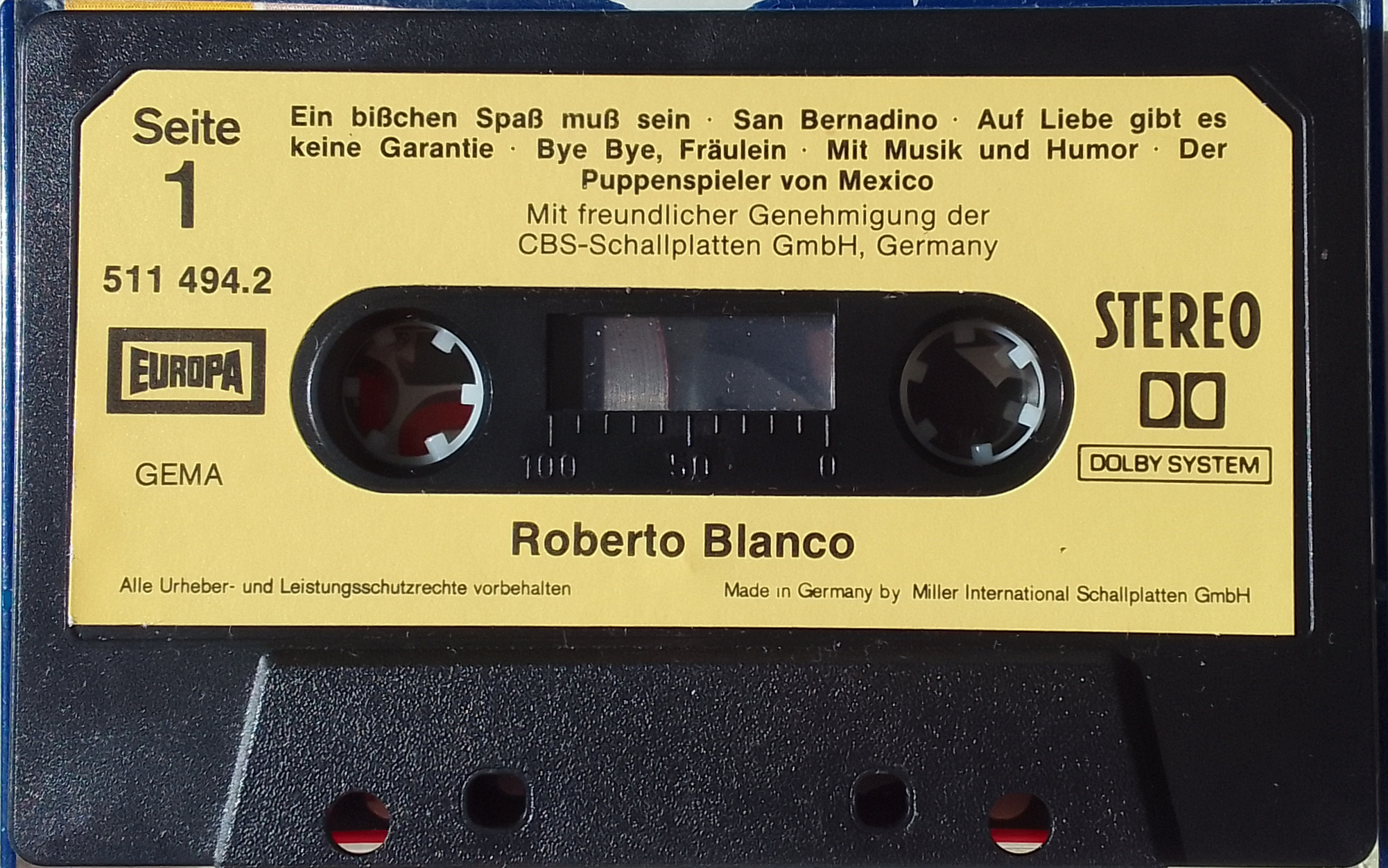 Аудиокассета фирмы Europa ( ФРГ) - Roberto Blanco.1980 год.