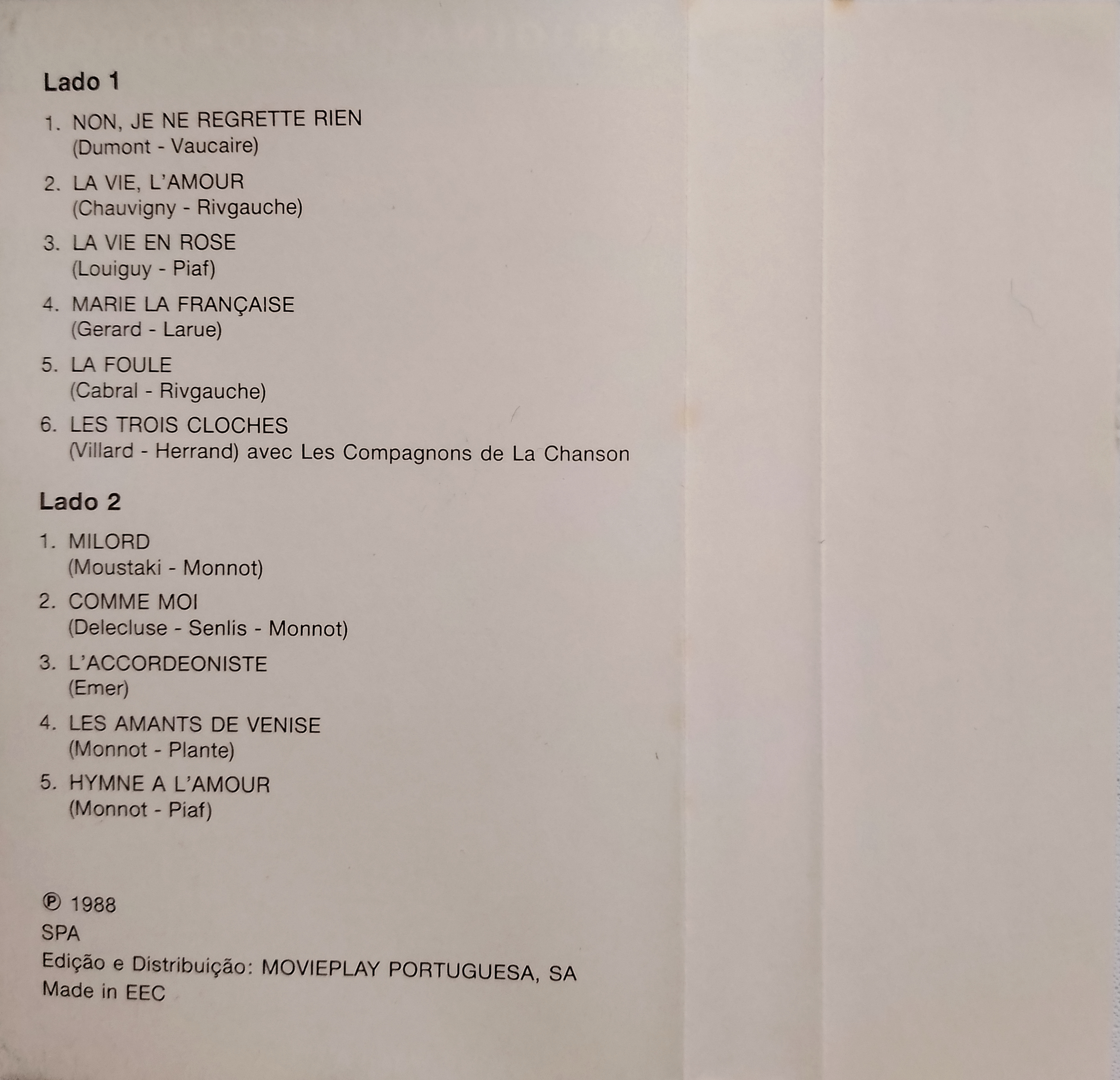Аудиокассета фирмы Movieplay (Португалия) - Edith Piaf. The Wonderful World Of Edith Piaf. Grands Succes