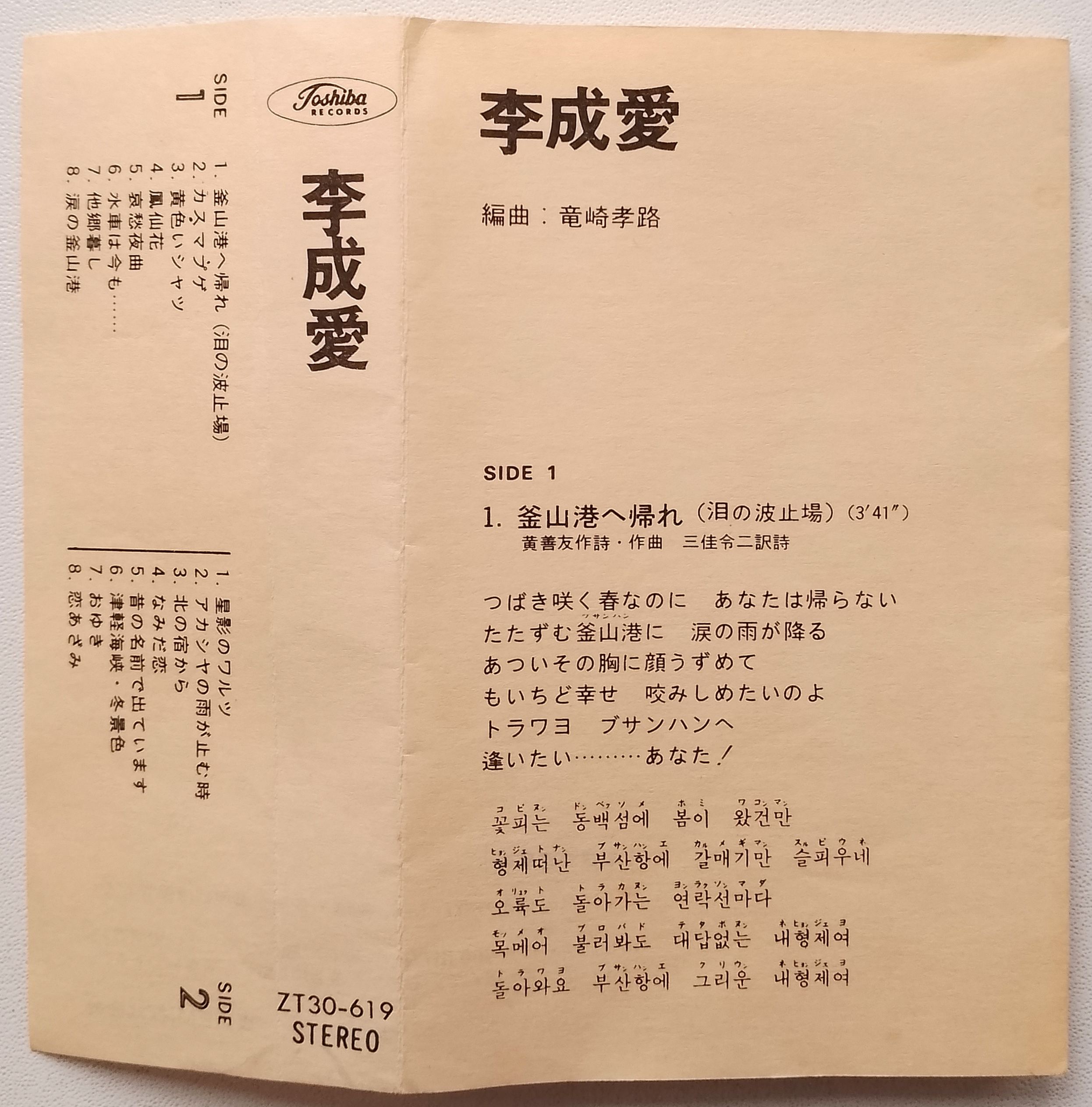 Аудиокассета фирмы Toshiba Records (Япония) - 李成愛 (Ли Сон Э).