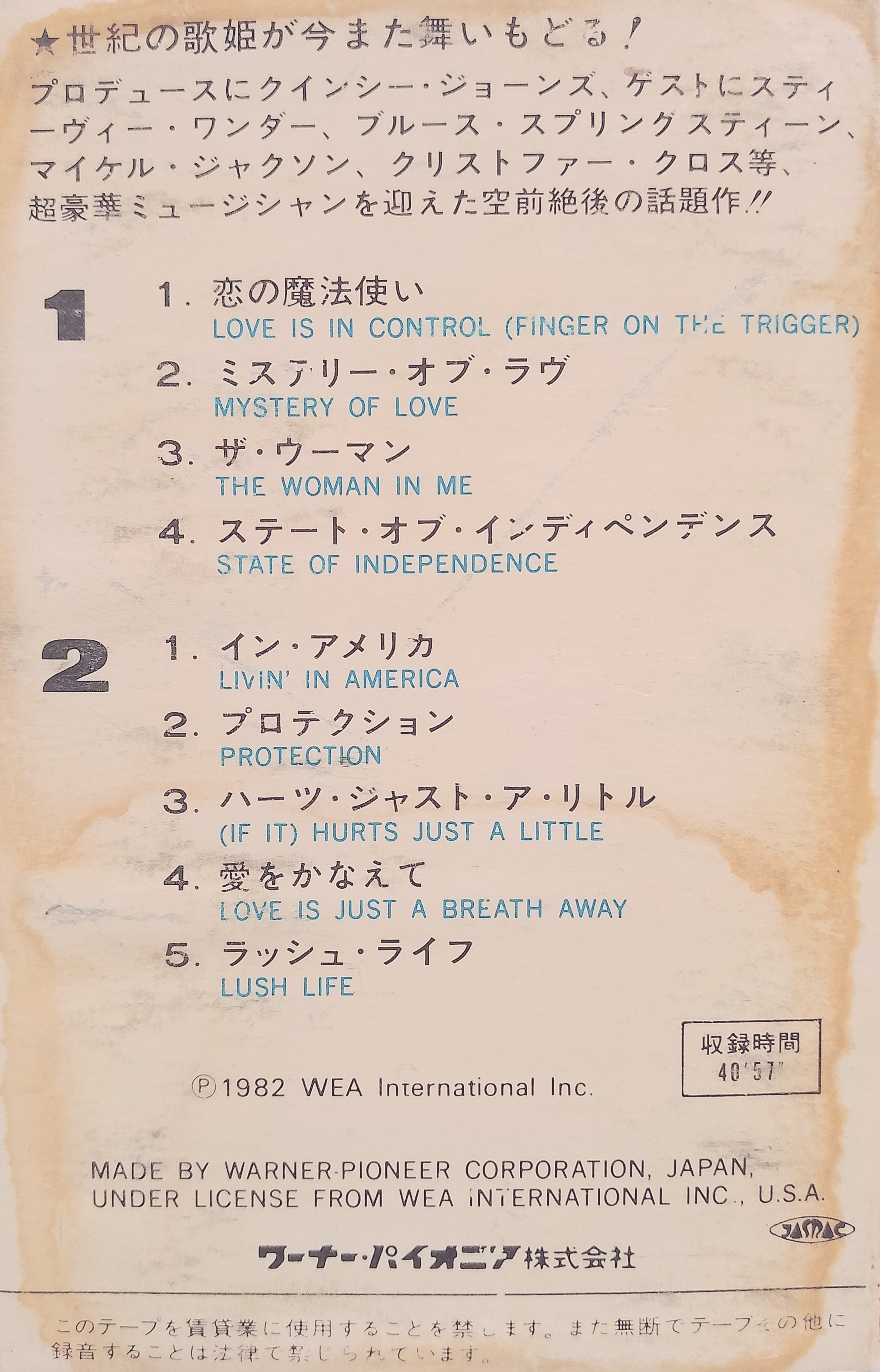 Аудиокассета фирмы Warner Bros. Records ( изготовлено в Японии) - Donna Summer – Donna Summer.1982 год.