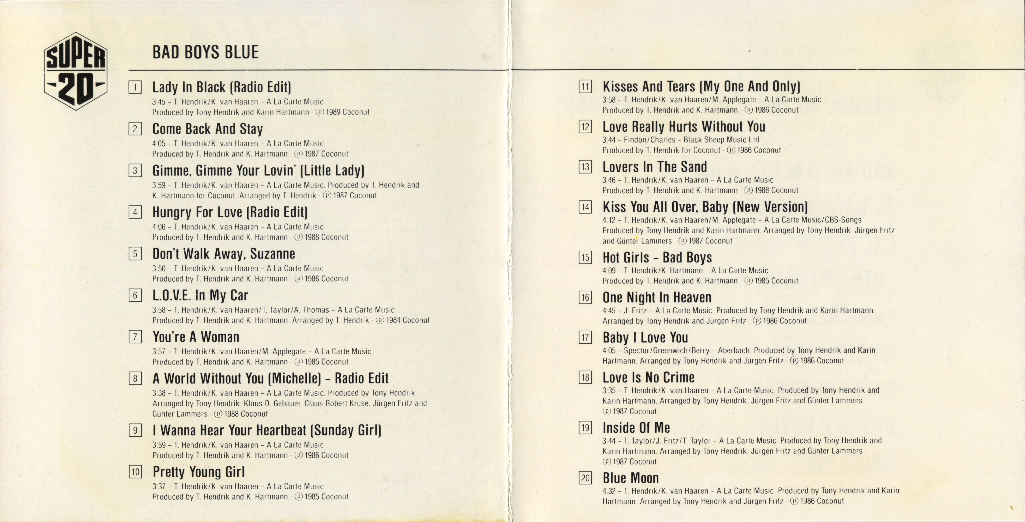 Producer – Tony Hendrik (8, 12), Tony Hendrik & Karin Hartmann (1-7, 9-11, 13-20)