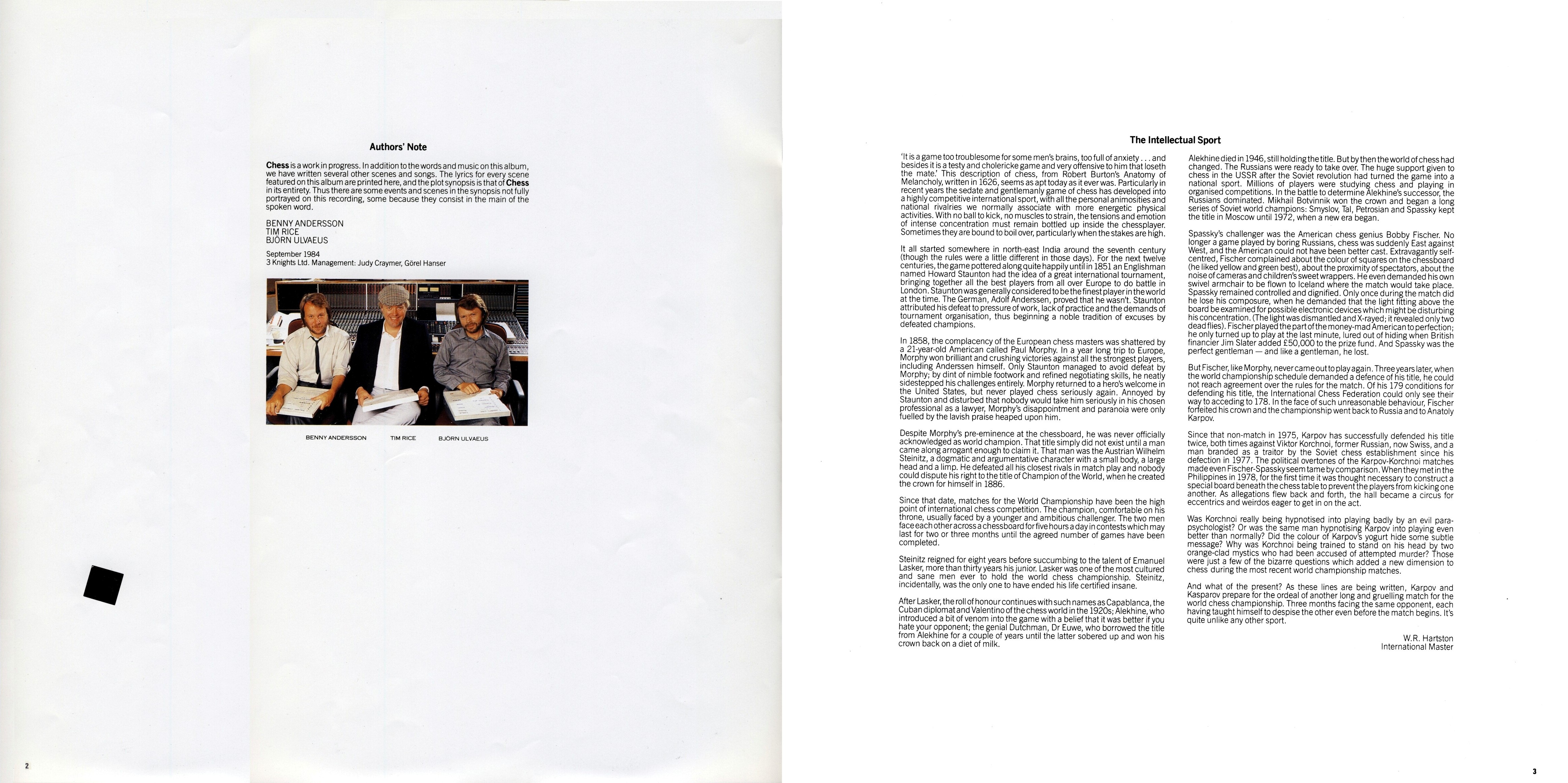 Sleeve Notes – Benny Andersson, Björn Ulvaeus, Tim Rice, W.R. Hartston