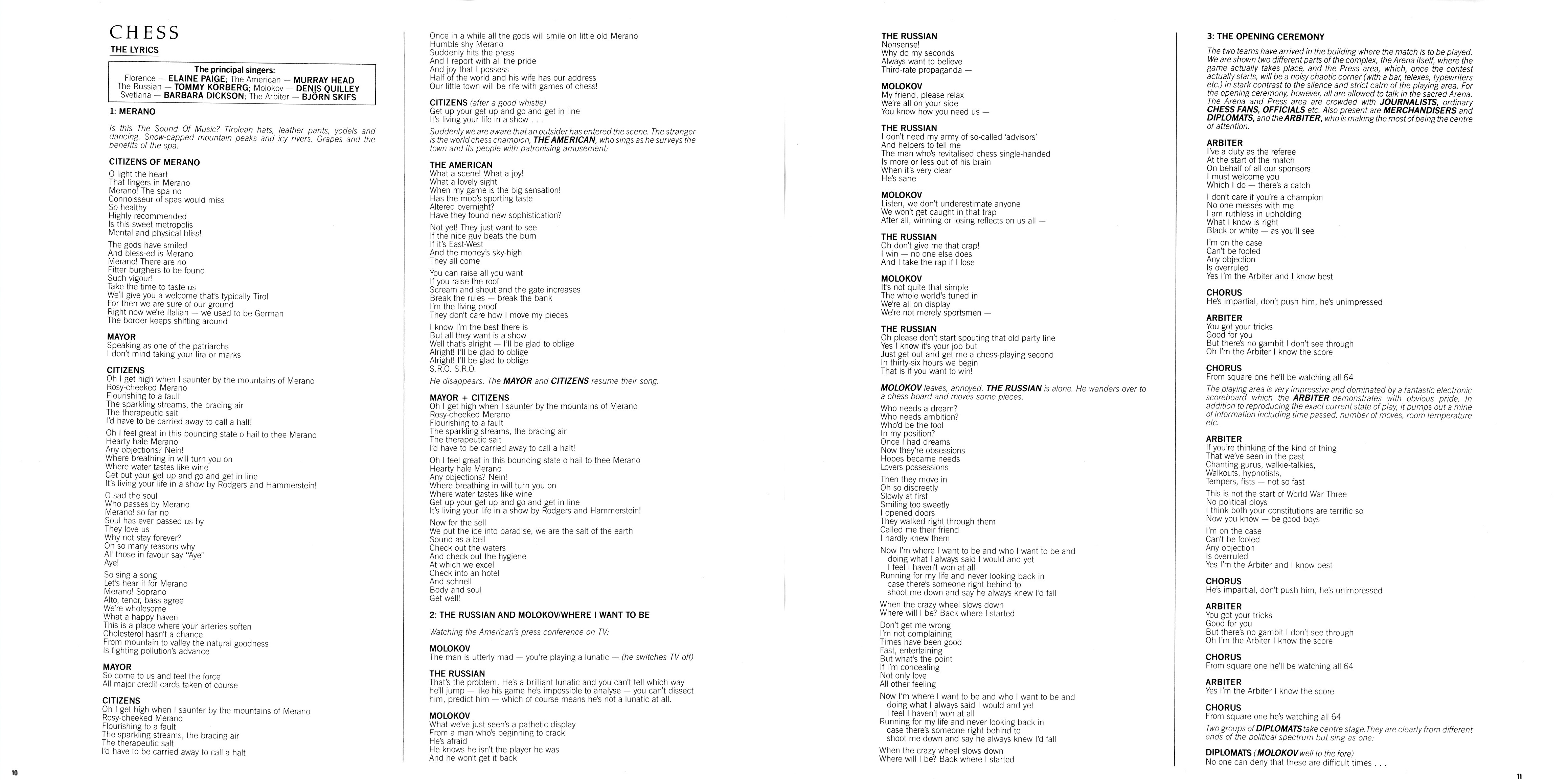 ► Тим Райс в 1981 году был на матче на первенство мира в Италии, в Мерано. Тогда я сражался с Корчным, и вот его впечатления легли в основу мюзикла «Chess».